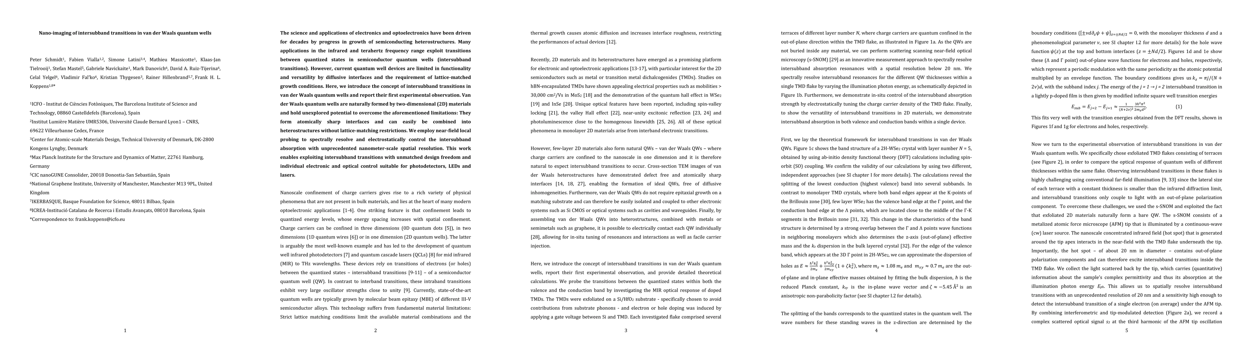 This paper reports the first experimental observation of intersubband transitions in van der Waals quantum wells formed by 2D materials, demonstrating atomically sharp interfaces and lattice-matching freedom, and using near-field nano-imaging to achieve high-resolution spectral and electrostatic control. This breakthrough offers unprecedented design flexibility for optoelectronic devices like photodetectors, LEDs, and lasers.