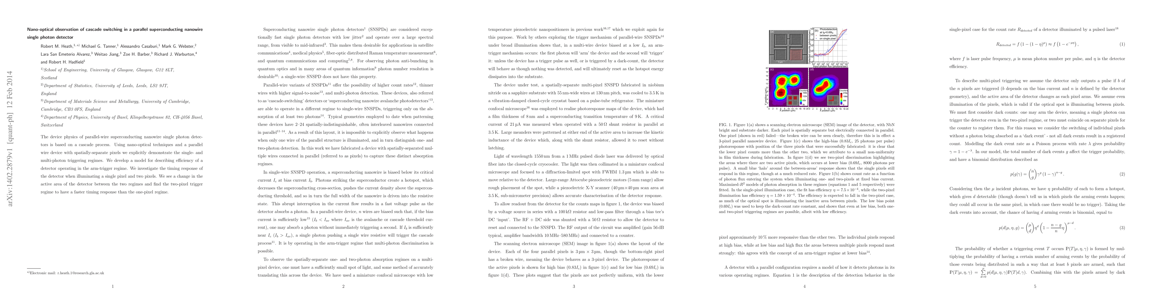 The device physics of parallel-wire superconducting nanowire single photon detectors is based on a cascade process. Using nano-optical techniques and a parallel wire device with spatially-separate pixels we explicitly demonstrate the single- and multi-photon triggering regimes. We develop a model for describing efficiency of a detector operating in the arm-trigger regime. We investigate the timing response of the detector when illuminating a single pixel and two pixels. We see a change in the active area of the detector between the two regimes and find the two-pixel trigger regime to have a faster timing response than the one-pixel regime.
