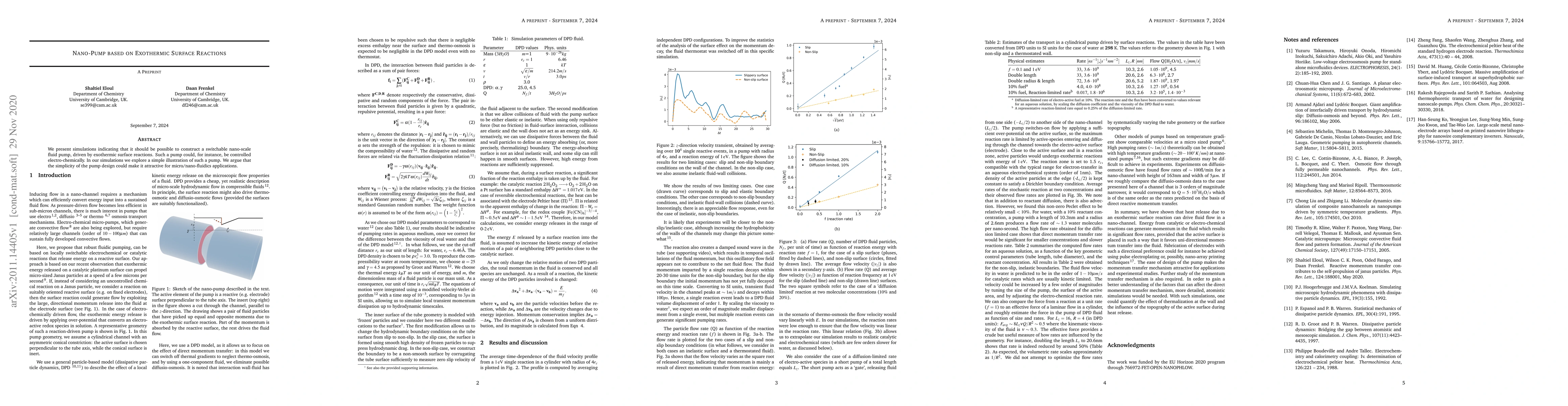 We present simulations indicating that it should be possible to construct a switchable nano-scale fluid pump, driven by exothermic surface reactions. Such a pump could, for instance, be controlled electro-chemically. In our simulations we explore a simple illustration of such a pump. We argue that the simplicity of the pump design could make it attractive for micro/nano-fluidics applications.