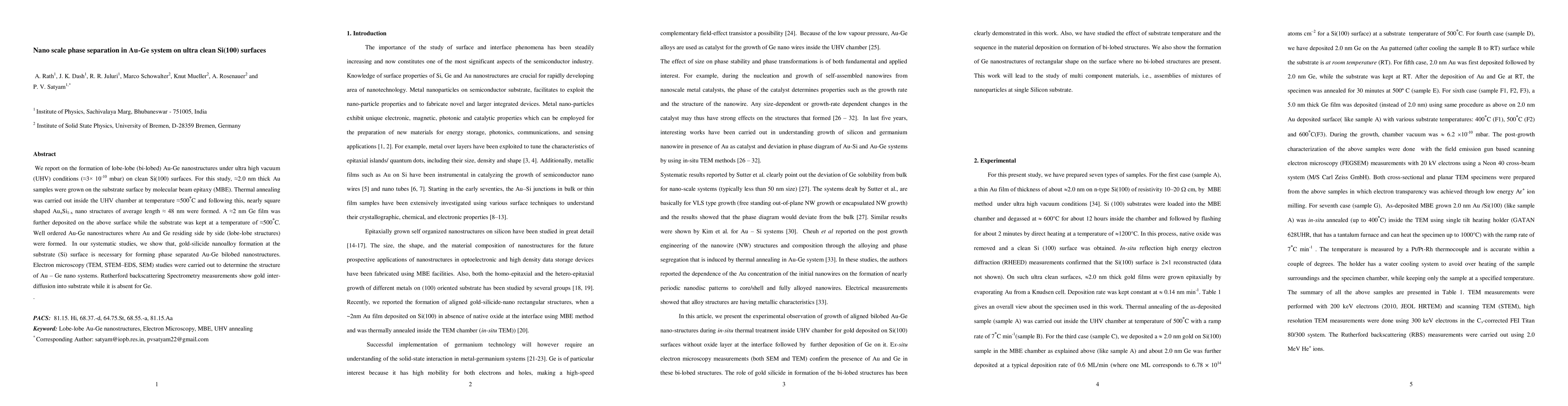This study investigates the formation of bi-lobed Au-Ge nanostructures on ultra-clean Si(100) surfaces under ultra high vacuum conditions, revealing the necessity of gold-silicide nanoalloy formation for the phase separation. Electron microscopy and spectrometry confirm the side-by-side arrangement of Au and Ge, with gold inter-diffusing into the substrate while Ge remains unaffected.