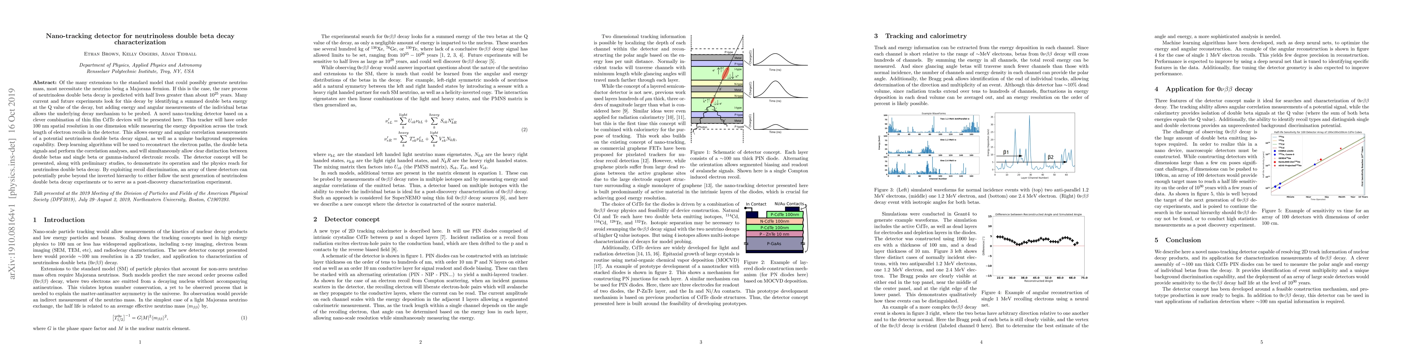 Of the many extensions to the standard model that could possibly generate neutrino mass, most necessitate the neutrino being a Majorana fermion. If this is the case, the rare process of neutrinoless double beta decay is predicted with half lives greater than about $10^{25}$ years. Many current and future experiments look for this decay by identifying a summed double beta energy at the Q value of the decay, but adding energy and angular measurements of the individual betas allows the underlying decay mechanism to be probed. A novel nano-tracking detector based on a clever combination of thin film CdTe devices will be presented here. This tracker will have order 100 nm spatial resolution in one dimension while measuring the energy deposition across the track length of electron recoils in the detector. This allows energy and angular correlation measurements of a potential neutrinoless double beta decay signal, as well as a unique background suppression capability. Deep learning algorithms will be used to reconstruct the electron paths, the double beta signals and perform the correlation analyses, and will simultaneously allow clear distinction between double betas and single beta or gamma-induced electronic recoils. The detector concept will be presented, along with preliminary studies, to demonstrate its operation and the physics reach for neutrinoless double beta decay. By exploiting recoil discrimination, an array of these detectors can potentially probe beyond the inverted hierarchy to either follow the next generation of neutrinoless double beta decay experiments or to serve as a post-discovery characterization experiment.