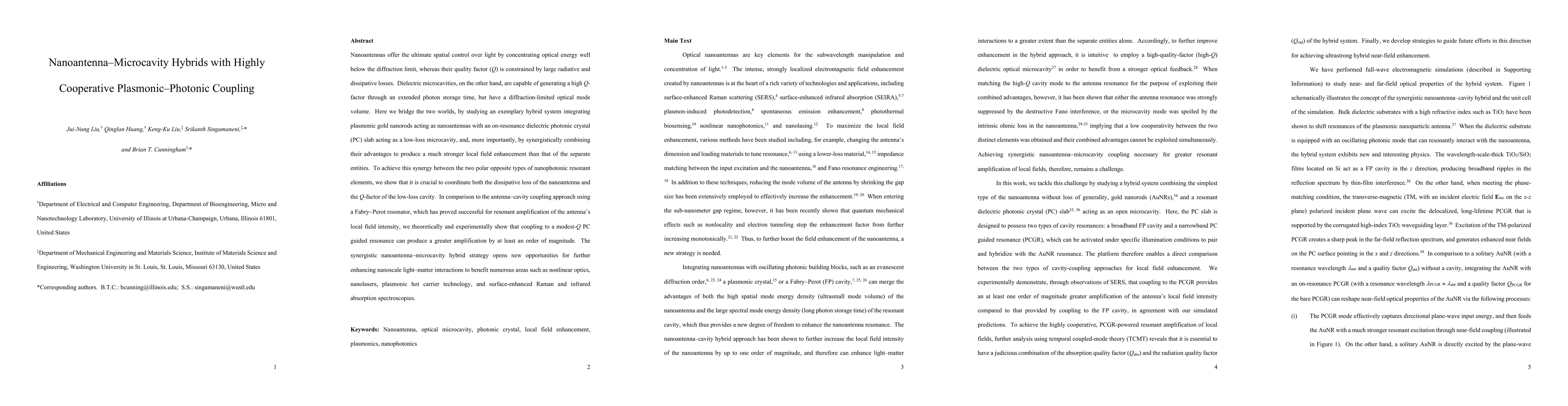 Researchers created a hybrid system combining nanoantennas with microcavities to enhance light-matter interactions, achieving an amplification of the local field intensity by at least an order of magnitude.