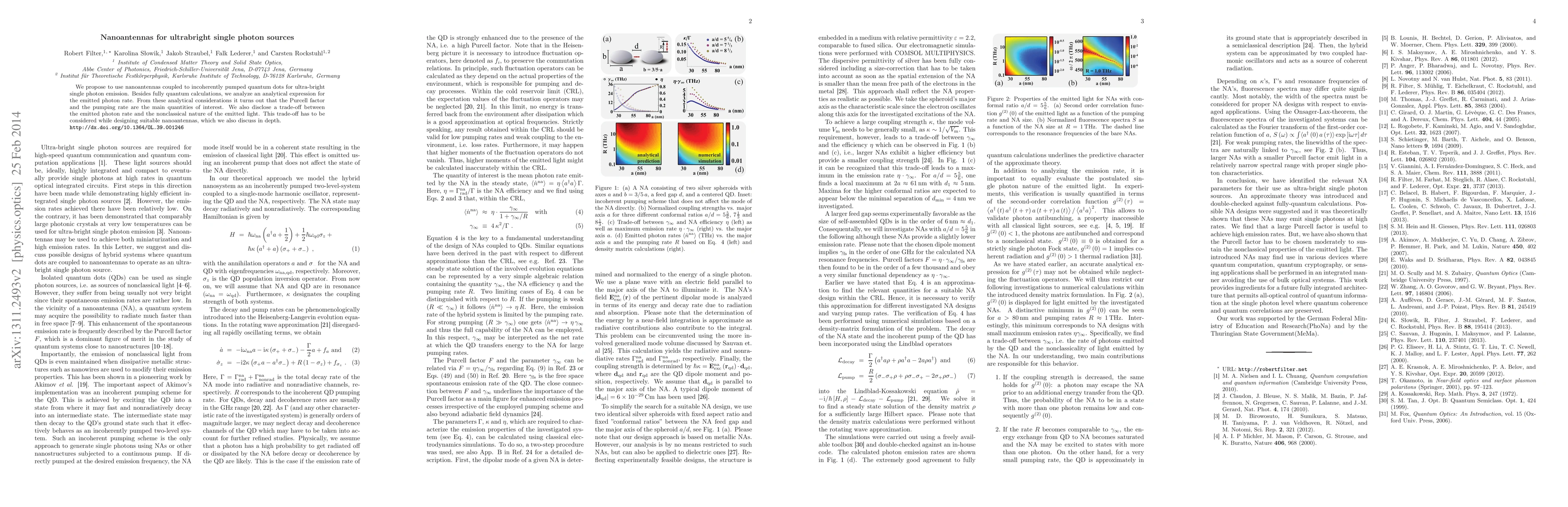 This paper proposes using nanoantennas coupled to quantum dots for enhanced single photon emission, analyzing the impact of the Purcell factor and pumping rate on photon rate. It highlights a trade-off between photon rate and light's nonclassical nature, crucial for nanoantenna design.