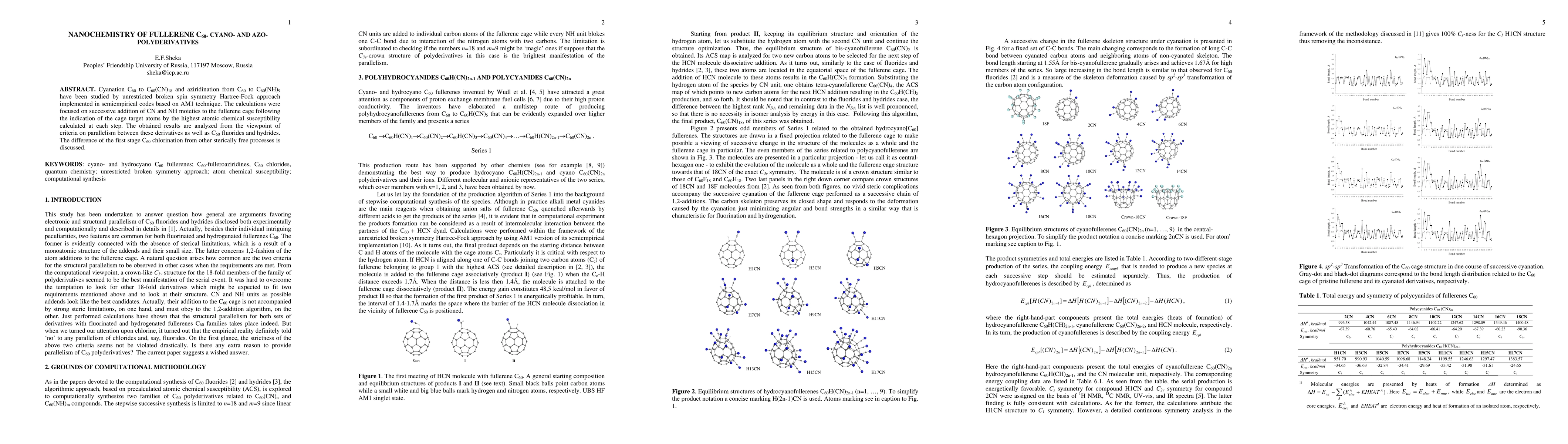 This paper investigates the cyanation and aziridination of fullerene C60 using computational methods, focusing on the addition of CN and NH groups to the fullerene cage. The study analyzes the chemical susceptibility of target atoms and compares the results to C60 fluorides and hydrides, highlighting differences in the initial chlorination process.
