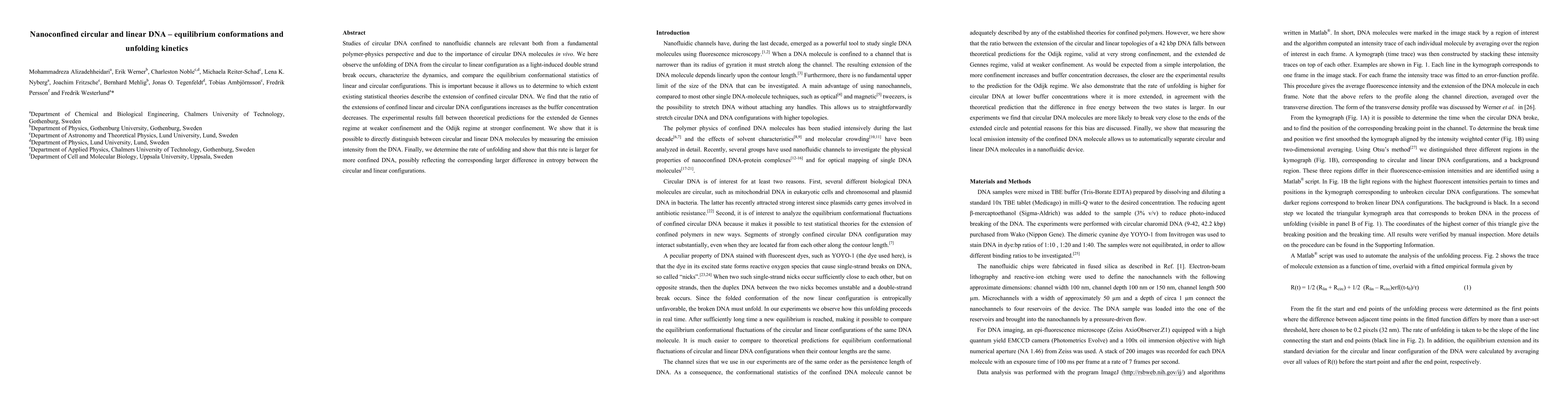 The paper presents a detailed analysis of nanoconfined DNA conformations and unfolding kinetics, providing experimental validation for theoretical predictions in the de Gennes and Odijk regimes.