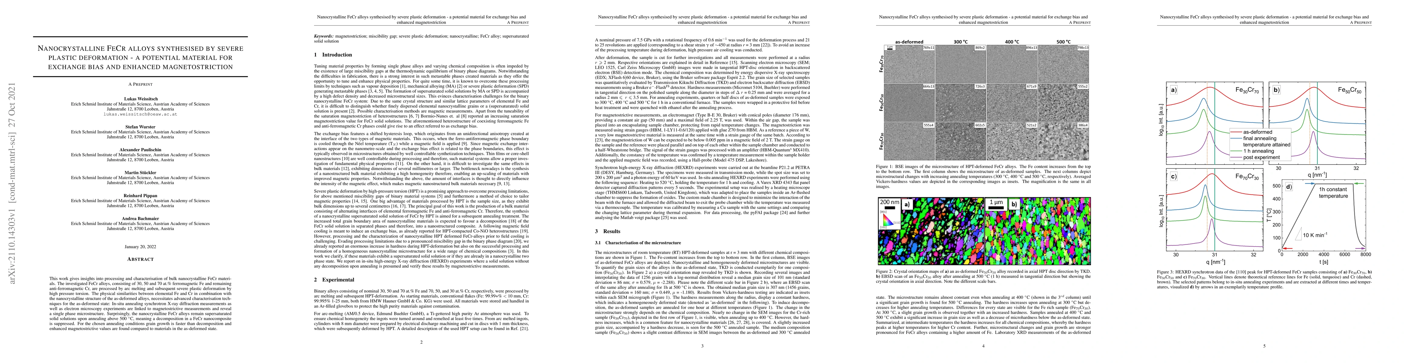 This study synthesizes bulk nanocrystalline FeCr alloys using severe plastic deformation, revealing their potential for exchange bias and enhanced magnetostriction. Despite annealing, the alloys maintain supersaturated solid solutions, showing faster grain growth than decomposition and improved magnetostrictive properties.