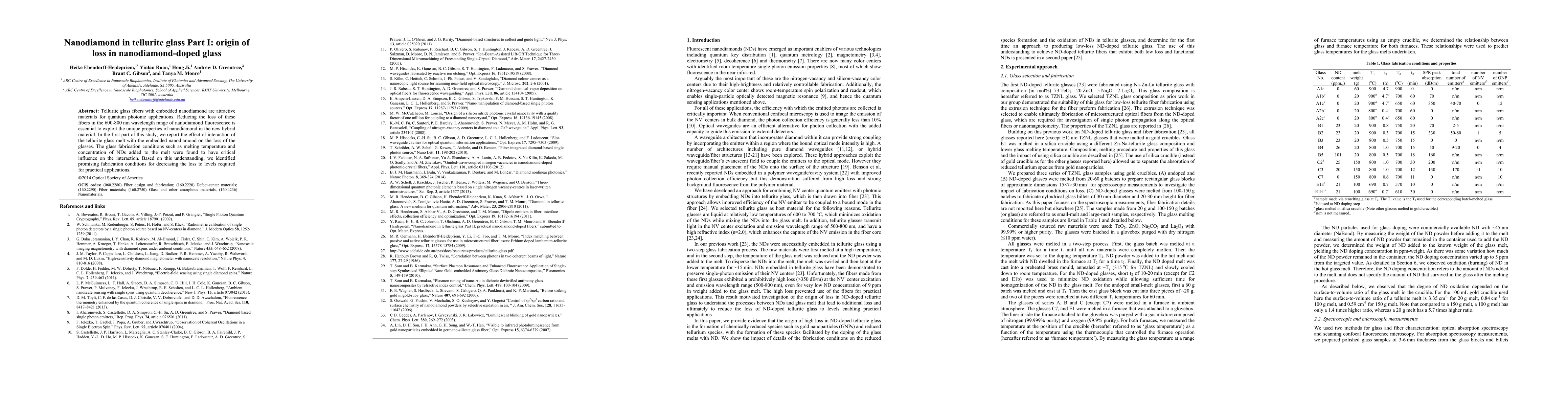 This study investigates the loss mechanisms in tellurite glass fibers embedded with nanodiamonds, focusing on the interaction between nanodiamond and the glass melt during fabrication. The research identifies that glass fabrication conditions, such as melting temperature and nanodiamond concentration, critically influence the loss, leading to the identification of optimal conditions for practical quantum photonic applications.