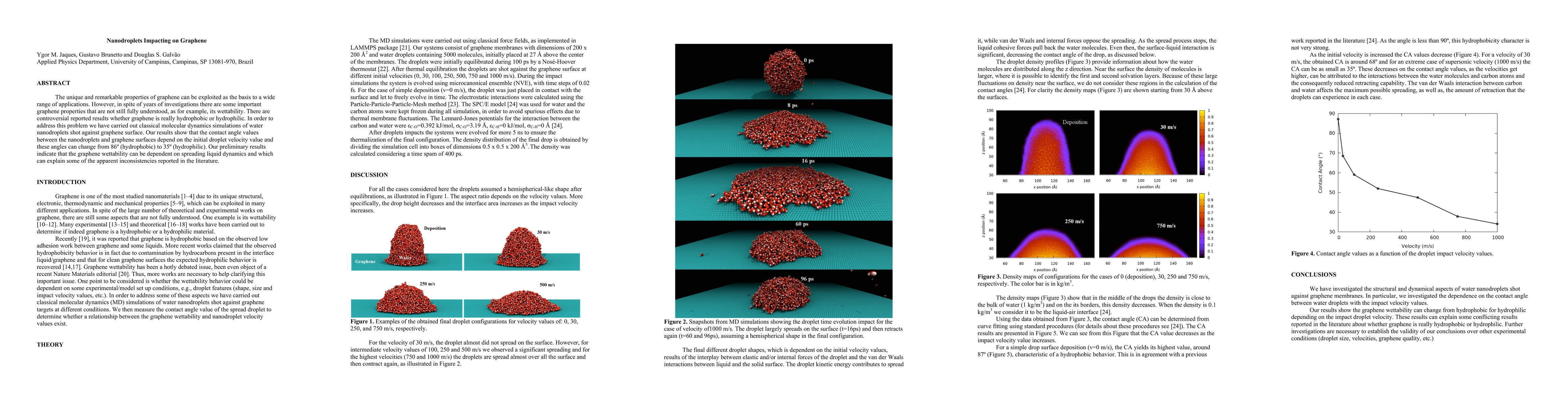 The unique and remarkable properties of graphene can be exploited as the basis to a wide range of applications. However, in spite of years of investigations there are some important graphene properties that are not still fully understood, as for example, its wettability. There are controversial reported results whether graphene is really hydrophobic or hydrophilic. In order to address this problem we have carried out classical molecular dynamics simulations of water nanodroplets shot against graphene surface. Our results show that the contact angle values between the nanodroplets and graphene surfaces depend on the initial droplet velocity value and these angles can change from 86 degrees (hydrophobic) to 35 degrees (hydrophilic). Our preliminary results indicate that the graphene wettability can be dependent on spreading liquid dynamics and which can explain some of the apparent inconsistencies reported in the literature.