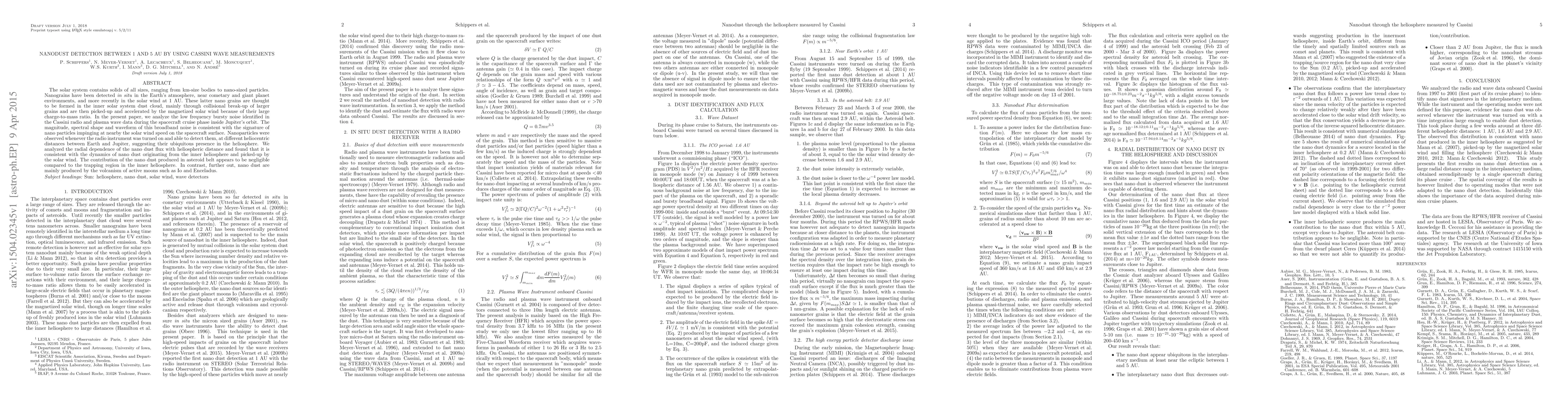 Researchers detected nanodust particles in space using Cassini wave measurements, finding they originate from the inner solar system dust cloud and are picked up by the solar wind, with varying production sources depending on distance from Earth to Jupiter.