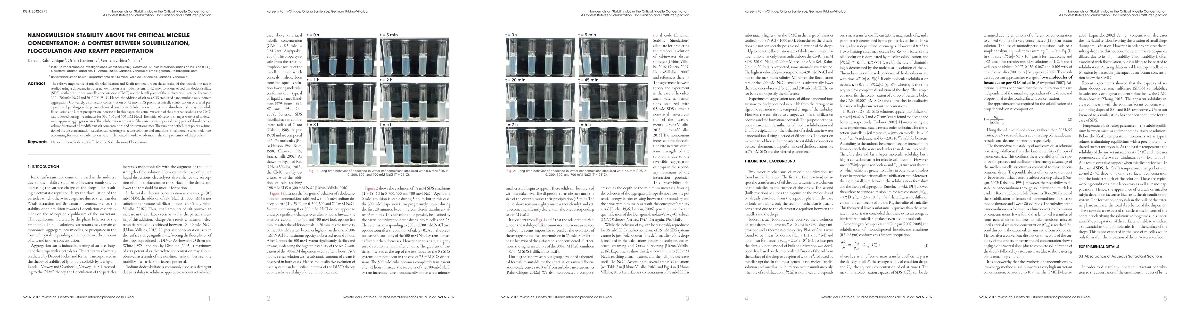 This paper investigates the stability of nanoemulsions above the critical micelle concentration (CMC) by examining the interplay between micelle solubilization, flocculation, and Krafft precipitation. It finds that salt addition induces aggregation without reaching CMC or Krafft point, while higher surfactant concentrations lead to either solubilization or precipitation, affecting system absorbance.