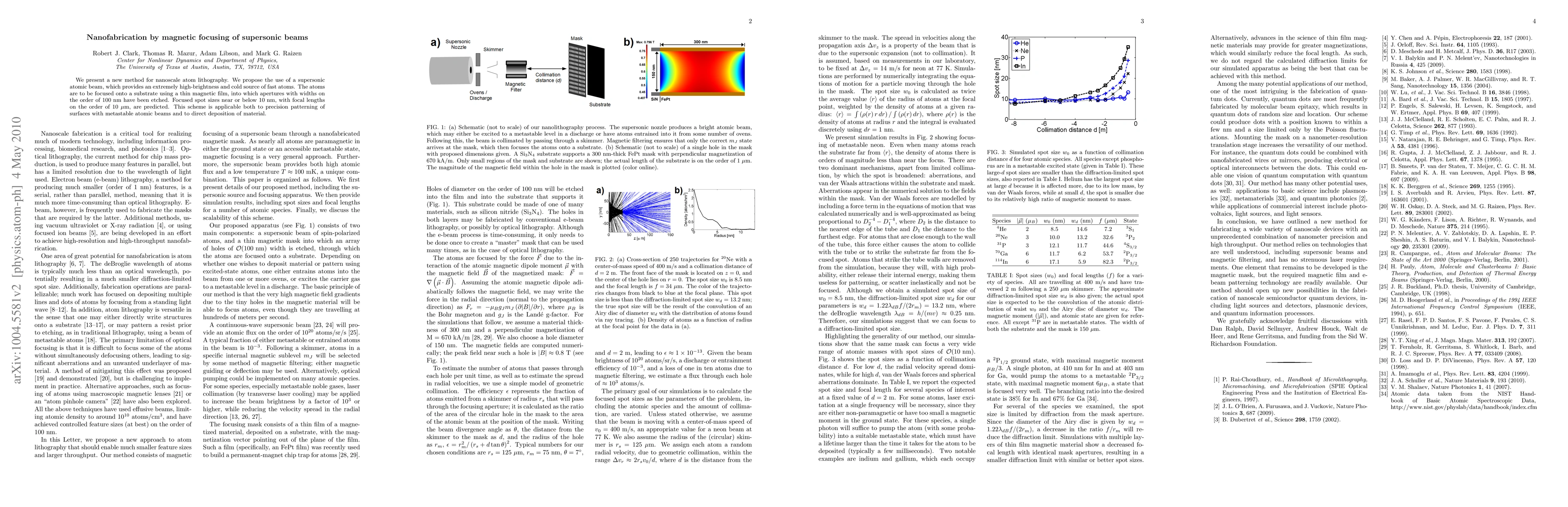 This paper introduces a novel nanofabrication technique using magnetic focusing of supersonic atomic beams, achieving nanoscale atom lithography with focused spot sizes below 10 nm and potential for precision surface patterning and material deposition.
