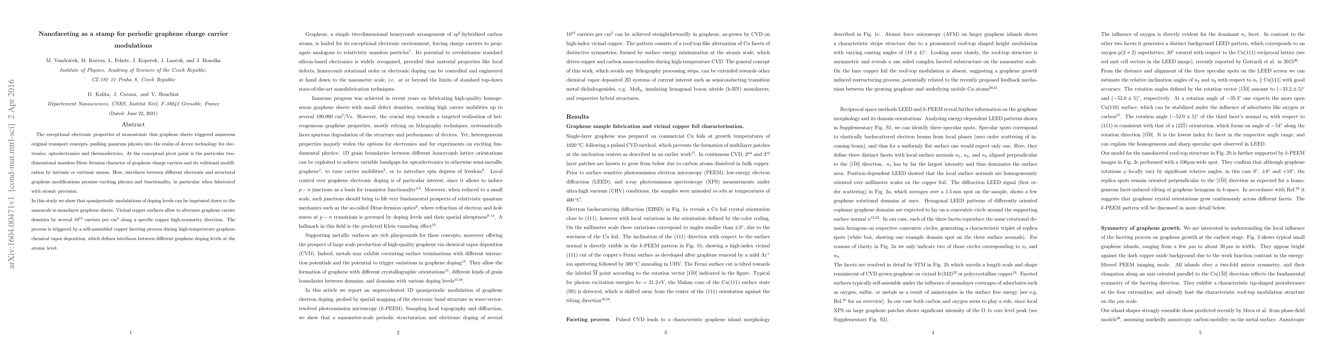 This study demonstrates nanoscale quasiperiodic modulation of graphene charge carriers via self-assembled copper faceting during high-temperature chemical vapor deposition. This method enables precise alternation of carrier densities along a copper high-symmetry direction, promising enhanced functionality in graphene-based electronic devices.