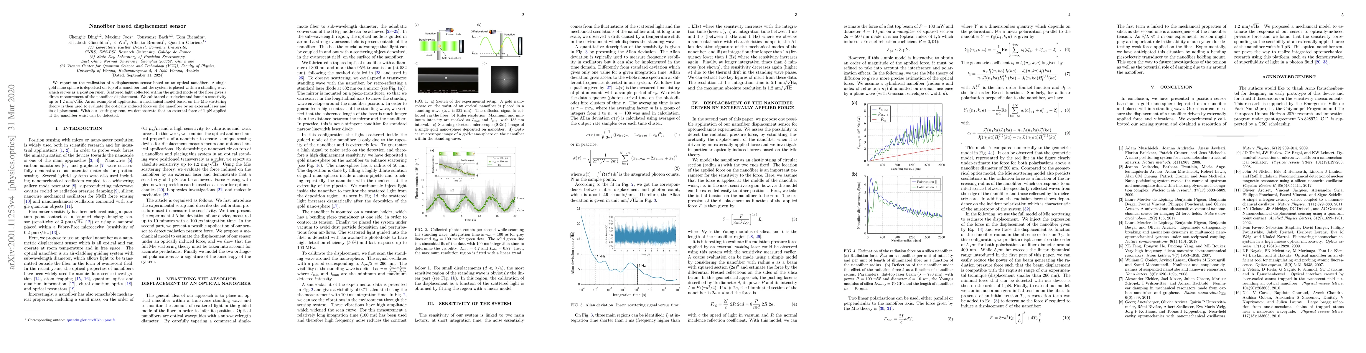 This research develops a displacement sensor using an optical nanofiber with a gold nano-sphere, achieving sensitivity up to 1.2 nm/$\sqrt{\text{Hz}}$. The system detects forces as low as 1 pN by measuring scattered light from Mie scattering.