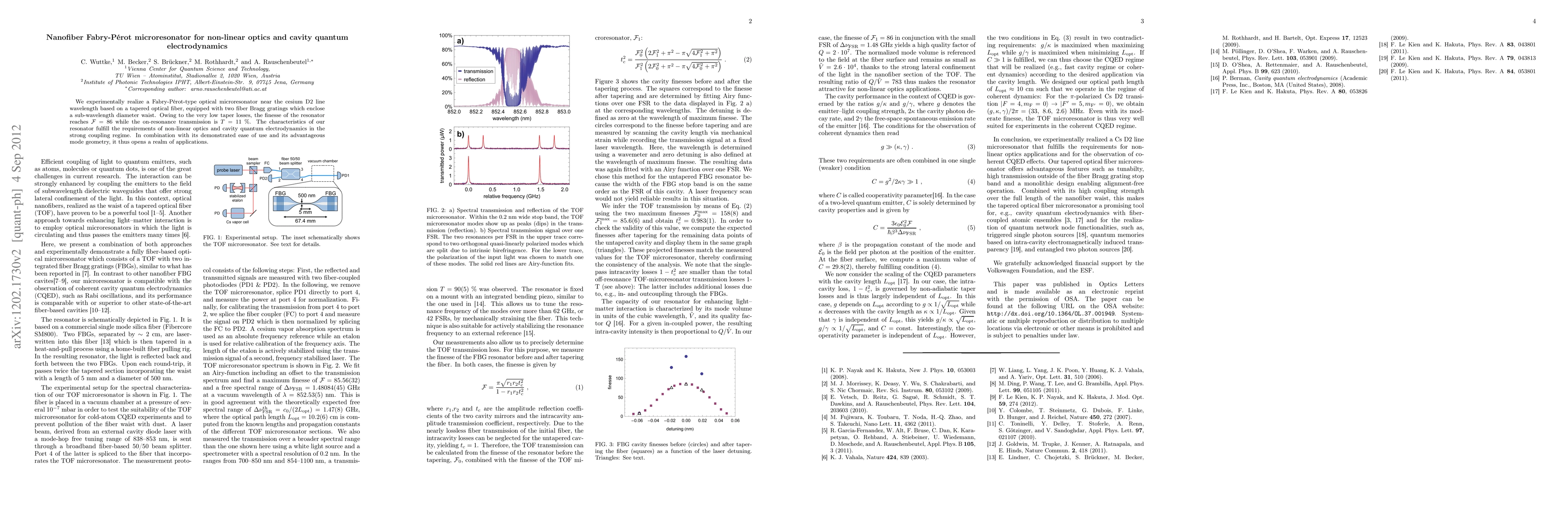 This paper presents a nanofiber Fabry-Perot microresonator with low taper losses, achieving high finesse (F = 86) and on-resonance transmission (T = 11%). The design supports non-linear optics and strong coupling for cavity quantum electrodynamics, offering potential applications in these fields.