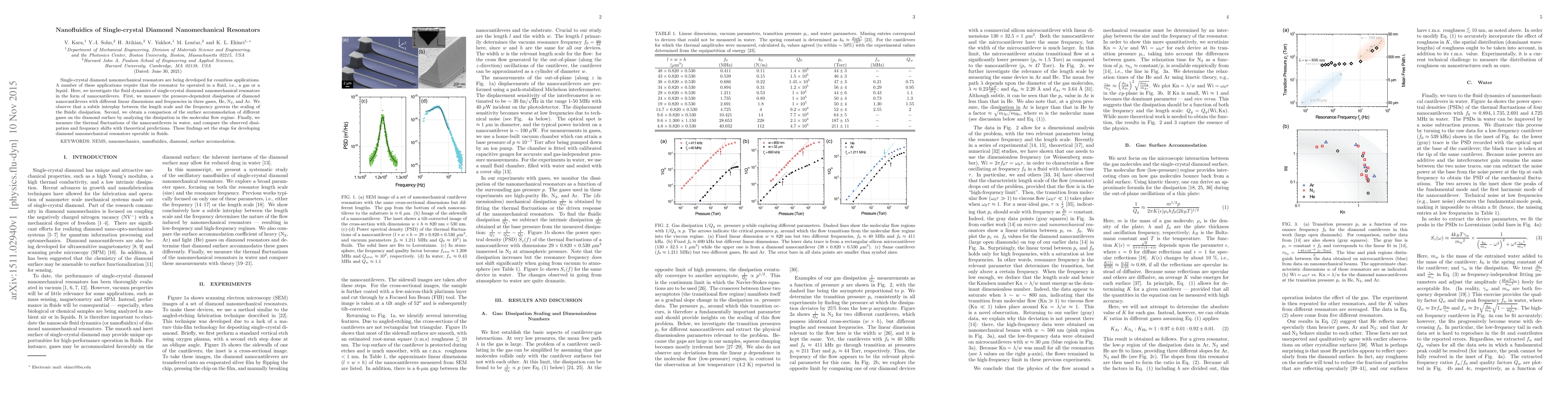 This study investigates the fluid dynamics of single-crystal diamond nanomechanical resonators, specifically measuring pressure-dependent dissipation in gases and comparing thermal fluctuations in water, to enhance the functionality of these resonators for fluid-based applications. The research reveals a complex interplay between resonator dimensions, frequency, and gas accommodation, alongside validating theoretical predictions for fluid operation.