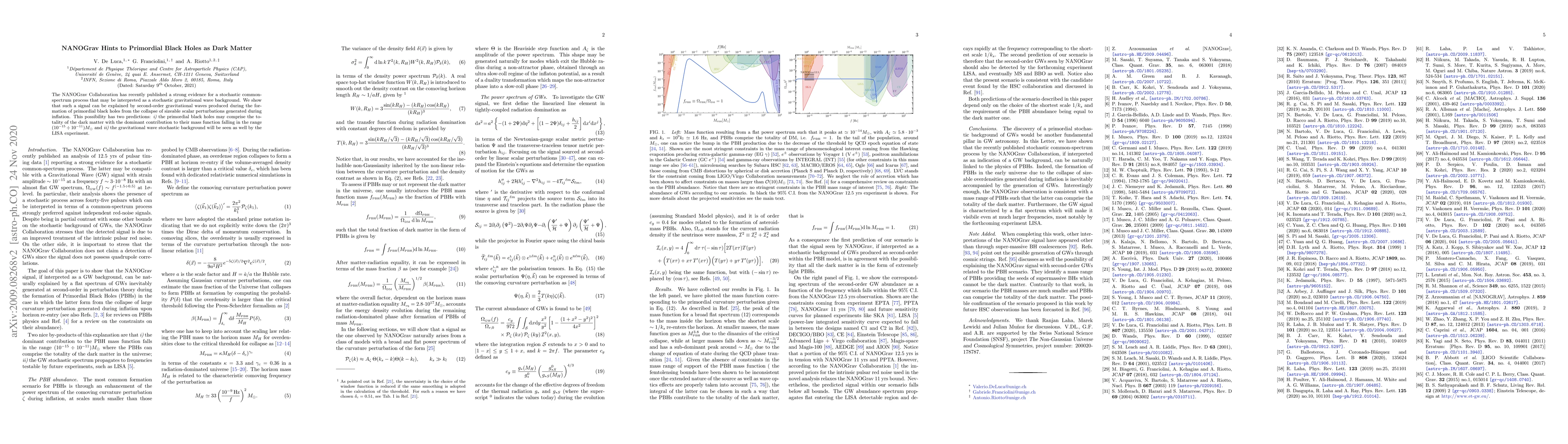 The NANOGrav Collaboration provides evidence for a stochastic gravitational wave background potentially from primordial black holes, suggesting these could constitute all dark matter in a specific mass range, and predicting its detection by LISA.