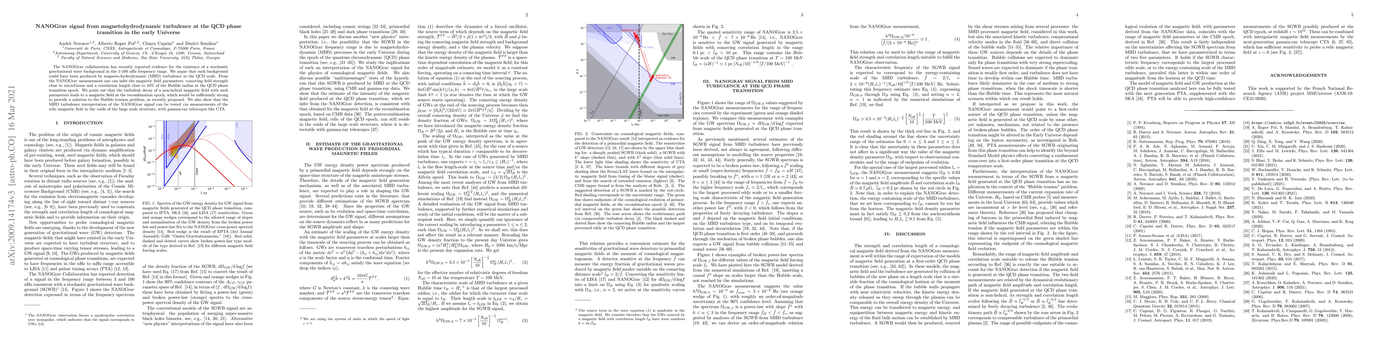 The NANOGrav collaboration suggests that a stochastic gravitational wave background could have been produced by magneto-hydrodynamic turbulence at the QCD phase transition in the early universe, offering a solution to the Hubble tension problem.