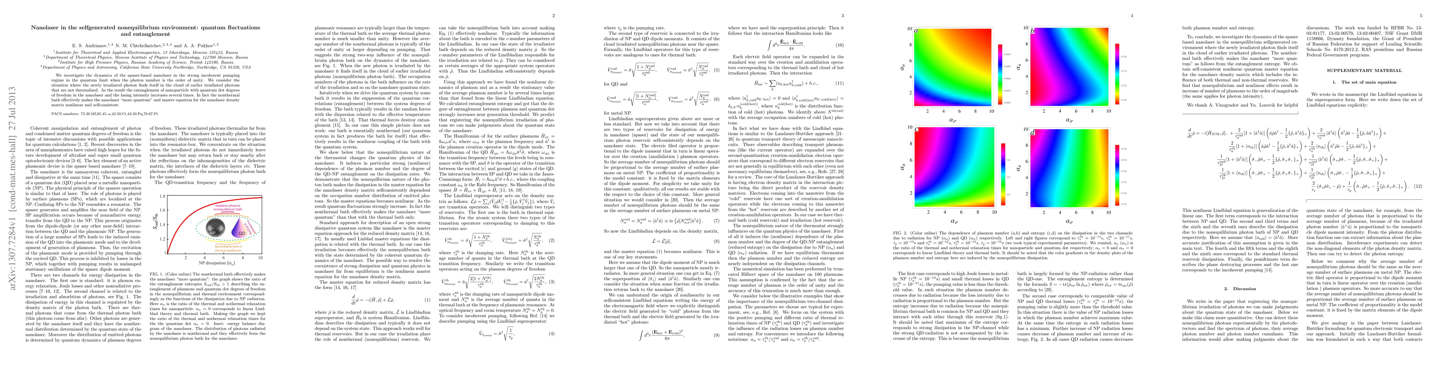 This paper explores the dynamics of a spaser-based nanolaser under strong incoherent pumping in the quantum limit, revealing enhanced entanglement and lasing intensity due to a nonthermal photon environment. The nonthermal bath induces a nonlinear, self-consistent master equation for the nanolaser density matrix, making it "more quantum."
