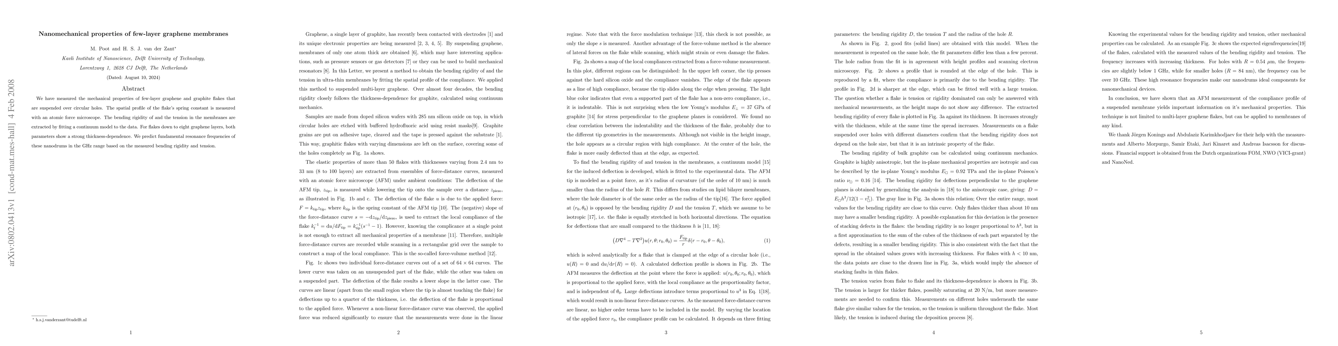 Researchers measured the mechanical properties of few-layer graphene membranes suspended over holes using an atomic force microscope, finding a strong thickness-dependence in bending rigidity and tension. They predict fundamental resonance frequencies in the GHz range for these nanodrums.