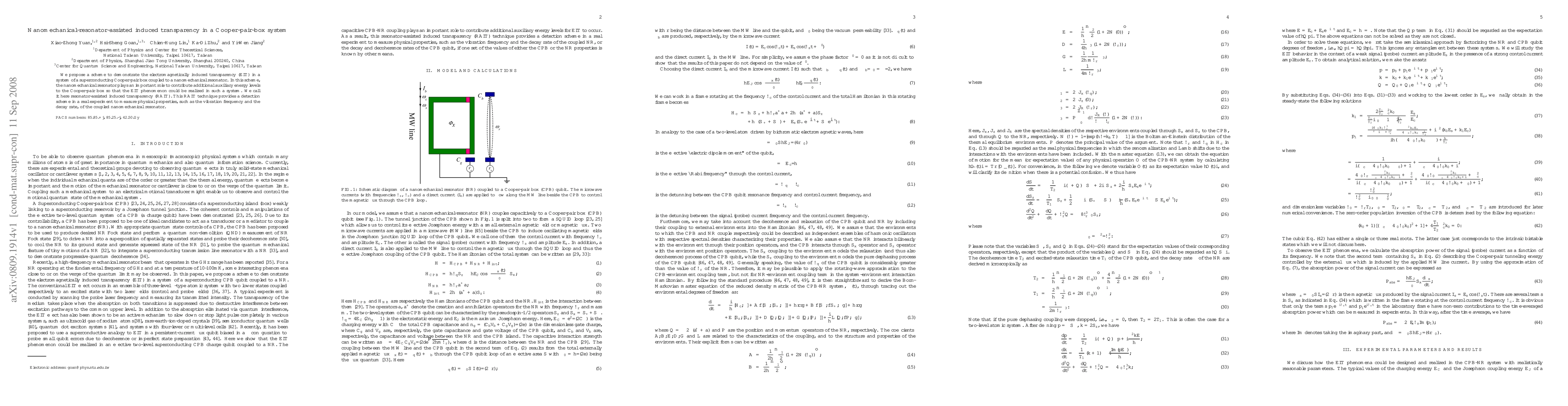 This paper proposes a method to achieve electromagnetically induced transparency (EIT) in a superconducting Cooper-pair box coupled with a nanomechanical resonator, termed resonator-assisted induced transparency (RAIT). This technique enables the measurement of the nanomechanical resonator's vibration frequency and decay rate.