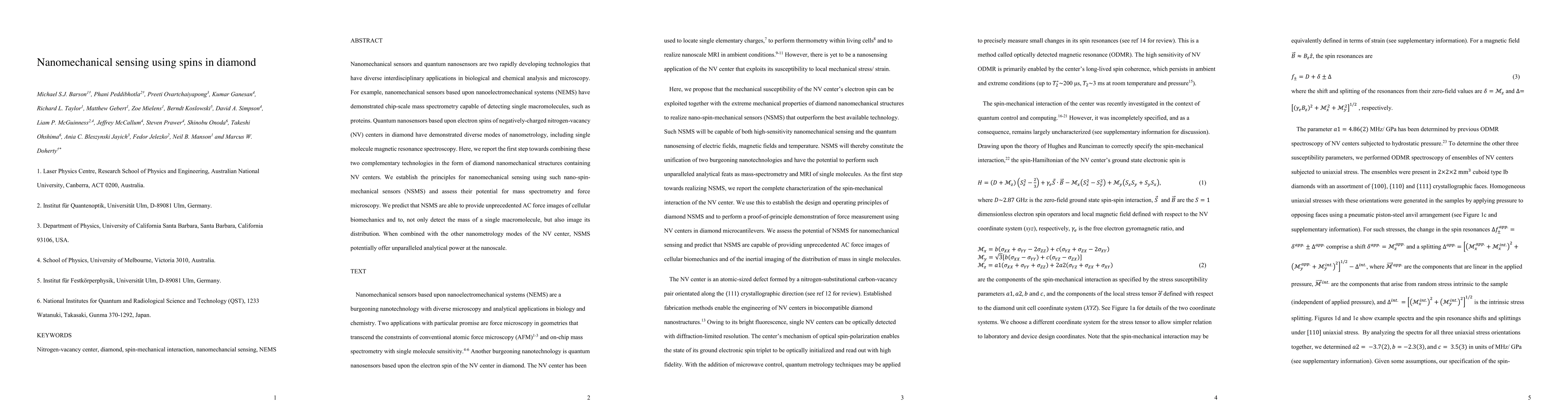 Researchers developed nanomechanical sensors using spins in diamond, combining principles of nanoelectromechanical systems and quantum nanosensors for unprecedented analytical power at the nanoscale.