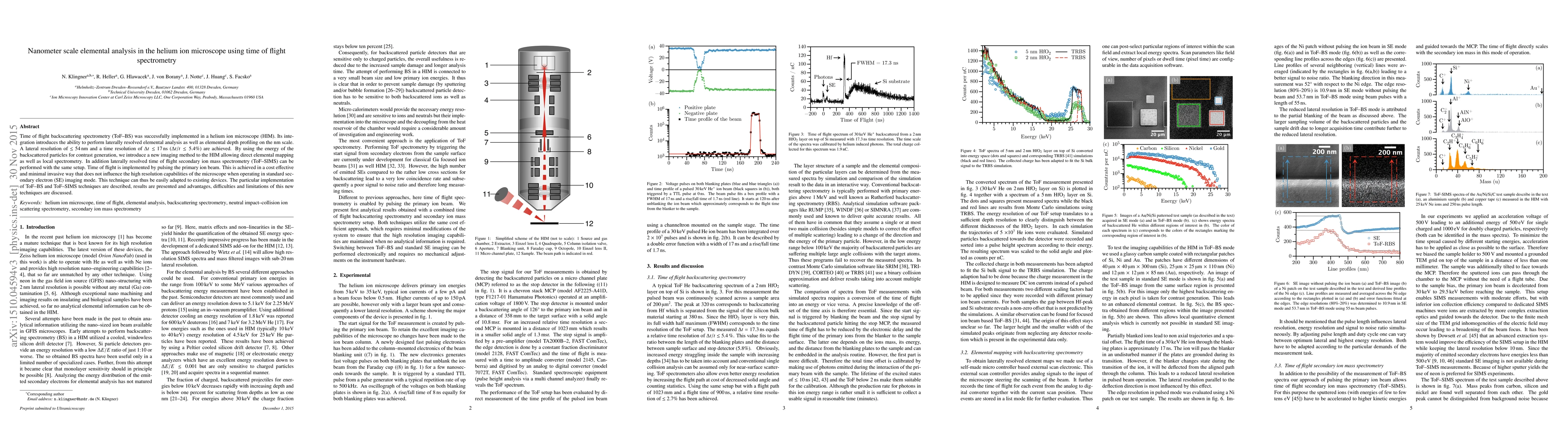 The implementation of ToF-Backscattering Spectrometry (ToF-BS) and ToF-SIMS in a HIM, providing a novel, non-invasive method for nanoscale elemental analysis and imaging.