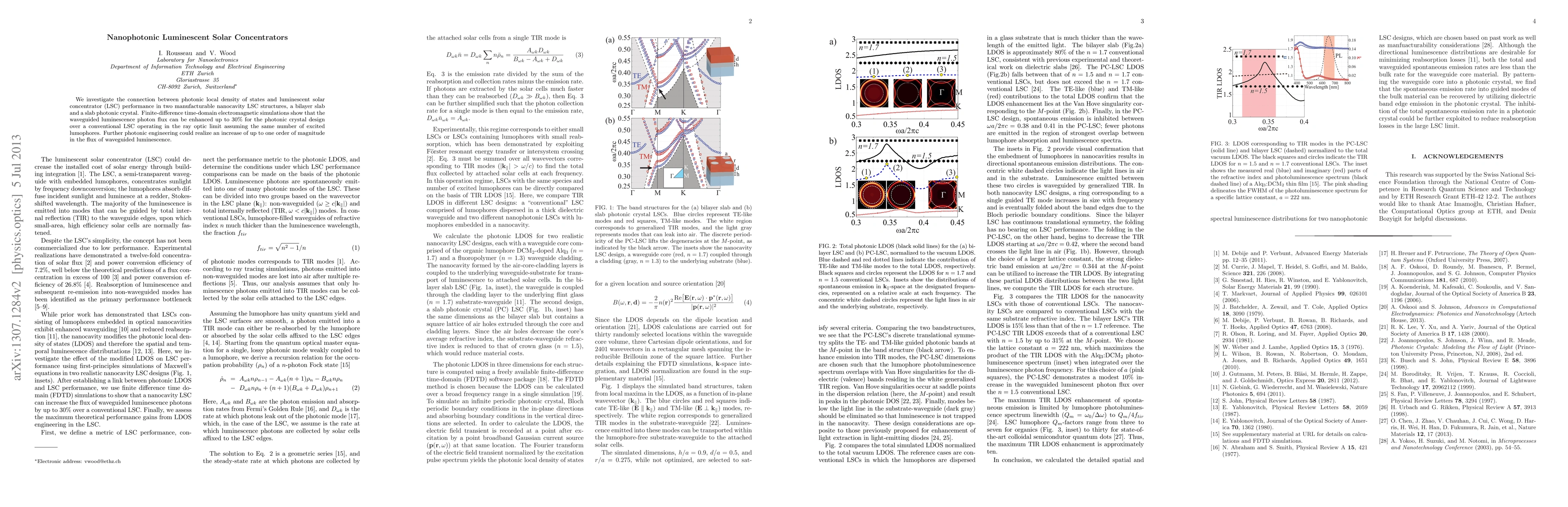 This paper explores the relationship between photonic local density of states and the performance of luminescent solar concentrators (LSCs) in two nanocavity designs: a bilayer slab and a slab photonic crystal. Simulation results indicate a 30% enhancement in waveguided luminescence photon flux for the photonic crystal design compared to conventional LSCs, with potential for a tenfold increase through further photonic engineering.