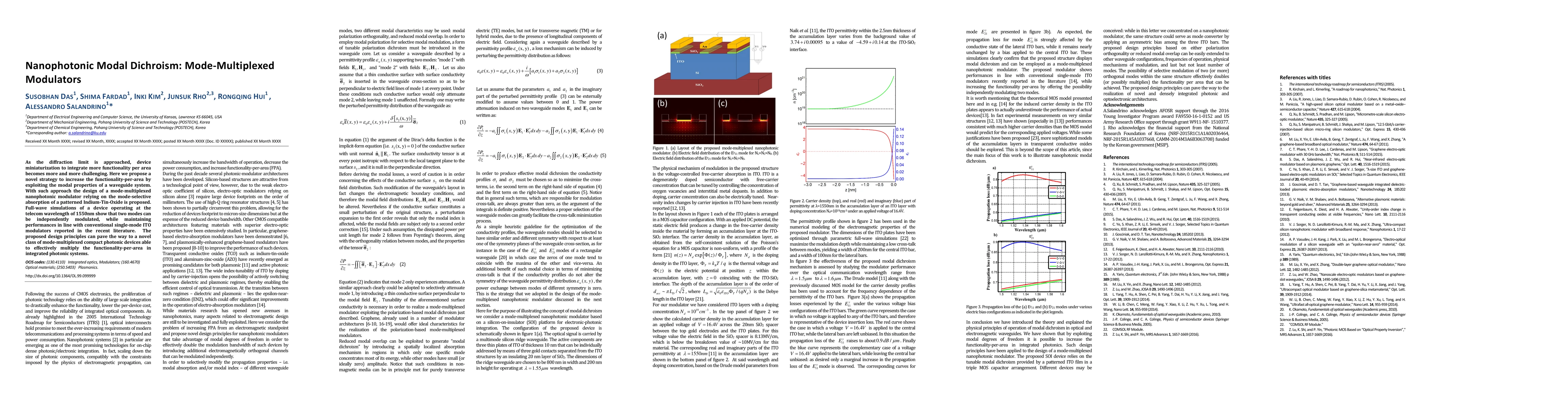 This paper proposes a novel nanophotonic modulator that exploits modal properties to achieve mode-multiplexed functionality, using patterned Indium-Tin-Oxide for selective absorption. Simulations demonstrate independent modulation of two modes at 1550nm, comparable to single-mode ITO modulators, suggesting potential for compact photonic devices.
