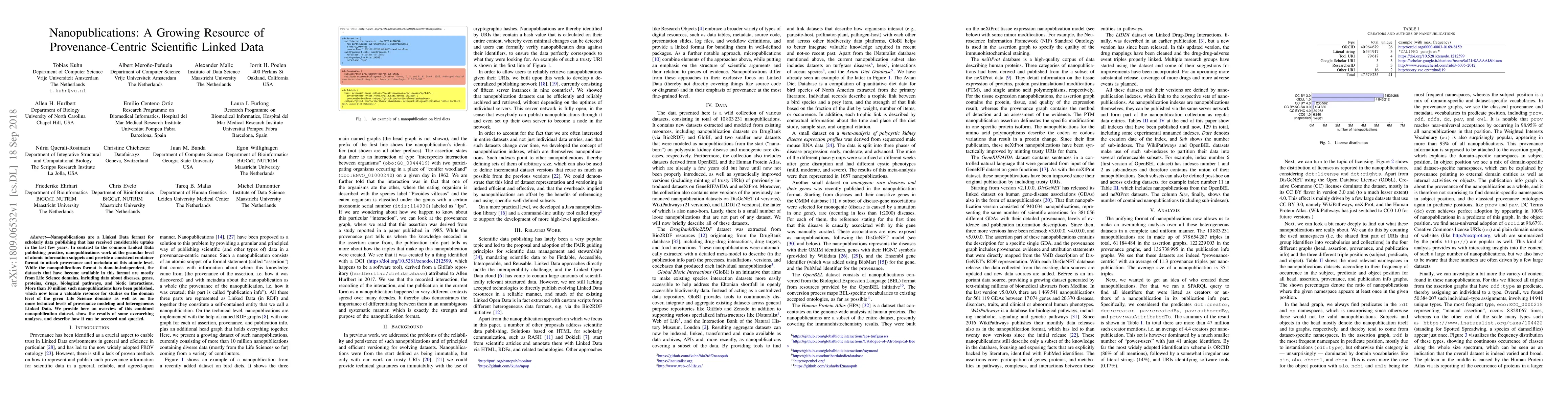 Nanopublications offer a granular Linked Data format for scholarly data, embedding provenance and metadata at the atomic level, predominantly in Life Science domains. This growing resource of over 10 million nanopublications serves both domain-specific research and technical studies in provenance modeling and Linked Data integration.