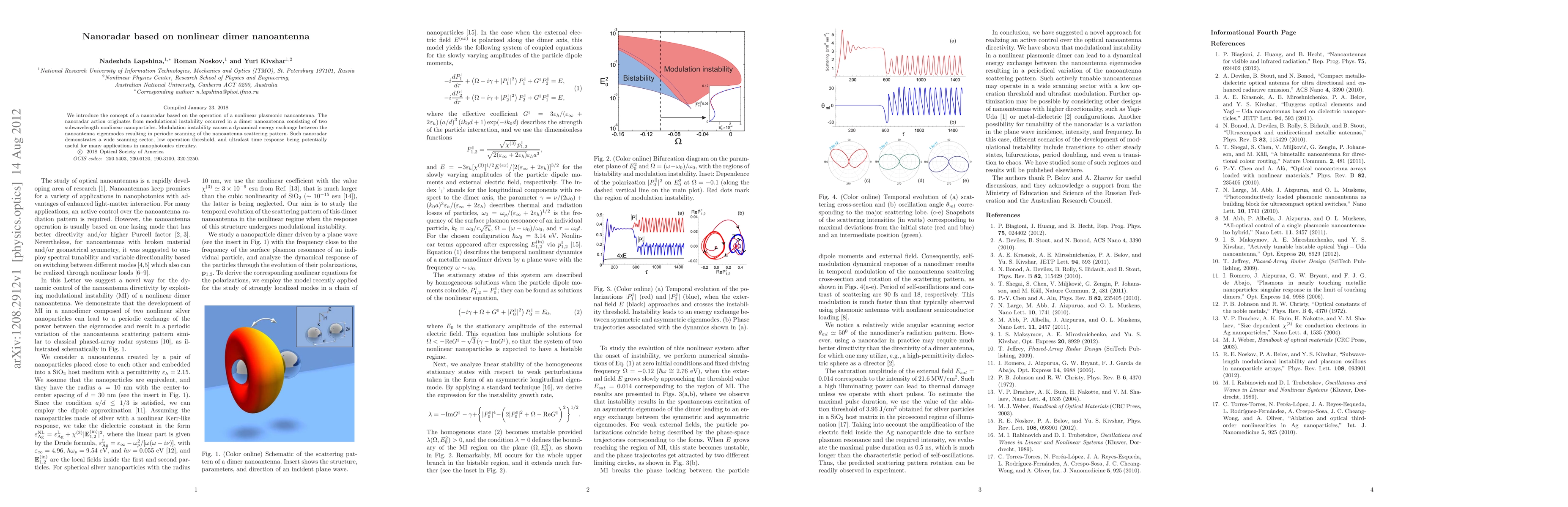 A nanoradar based on a nonlinear dimer nanoantenna can rapidly scan its scattering pattern, demonstrating high sensitivity and speed. This technology has potential applications in nanophotonics circuitry.
