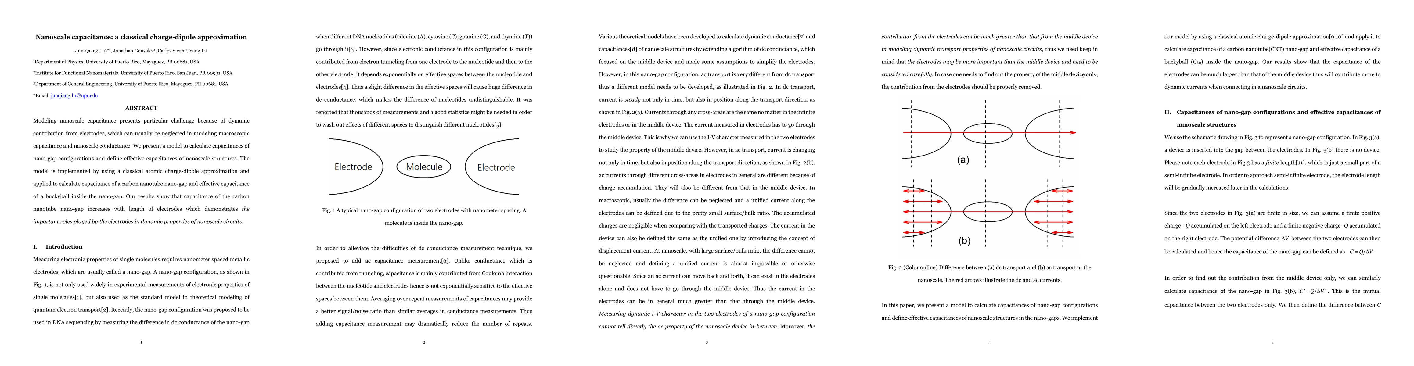 This paper proposes a classical charge-dipole approximation model to calculate capacitances in nanoscale configurations, highlighting the dynamic contributions from electrodes. The model's application to carbon nanotube nano-gaps reveals that electrode length significantly influences capacitance, underscoring the electrodes' role in nanoscale circuit dynamics.