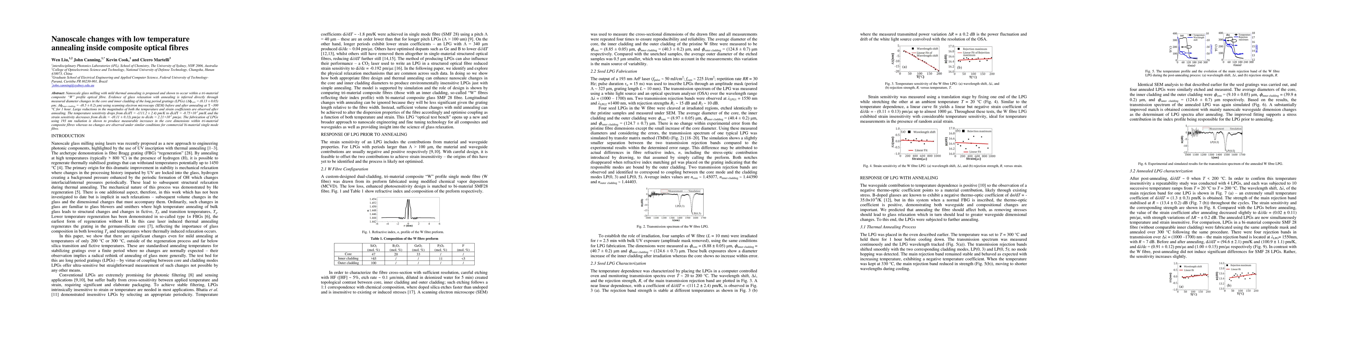 Summary: This paper proposes and demonstrates nanoscale glass milling and subsequent mild thermal annealing within a tri-material composite W profile optical fibre, highlighting the potential for precise material modifications at the nanoscale.