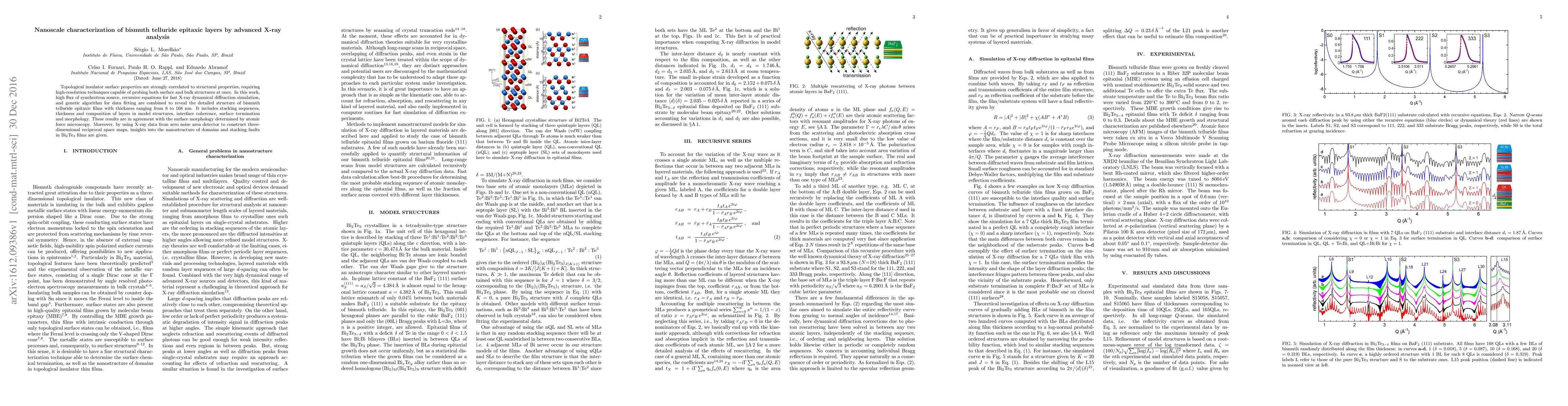 This study employs advanced synchrotron X-ray analysis to characterize the nanoscale structure of bismuth telluride epitaxic layers, revealing details about stacking sequences, interface coherence, and surface morphology, which align with atomic force microscopy results, and provides insights into domain structures and faults.