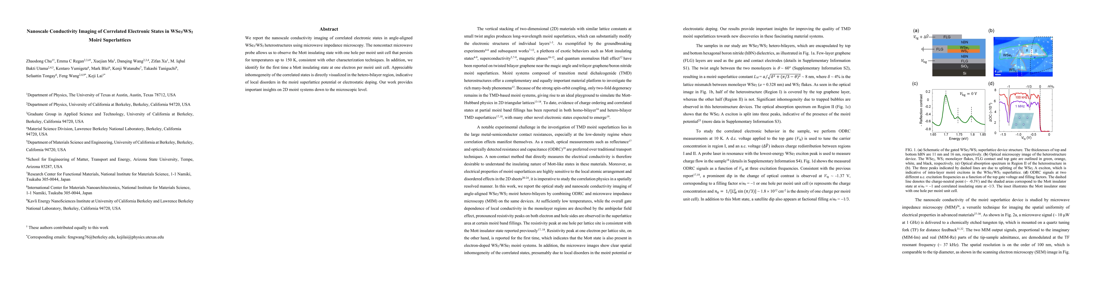 This study utilizes microwave impedance microscopy to visualize nanoscale conductivity in WSe2/WS2 moiré superlattices, revealing a Mott insulating state at both one hole and one electron per moiré unit cell. It identifies significant inhomogeneity in correlated electronic states, suggesting local disorder or doping effects.