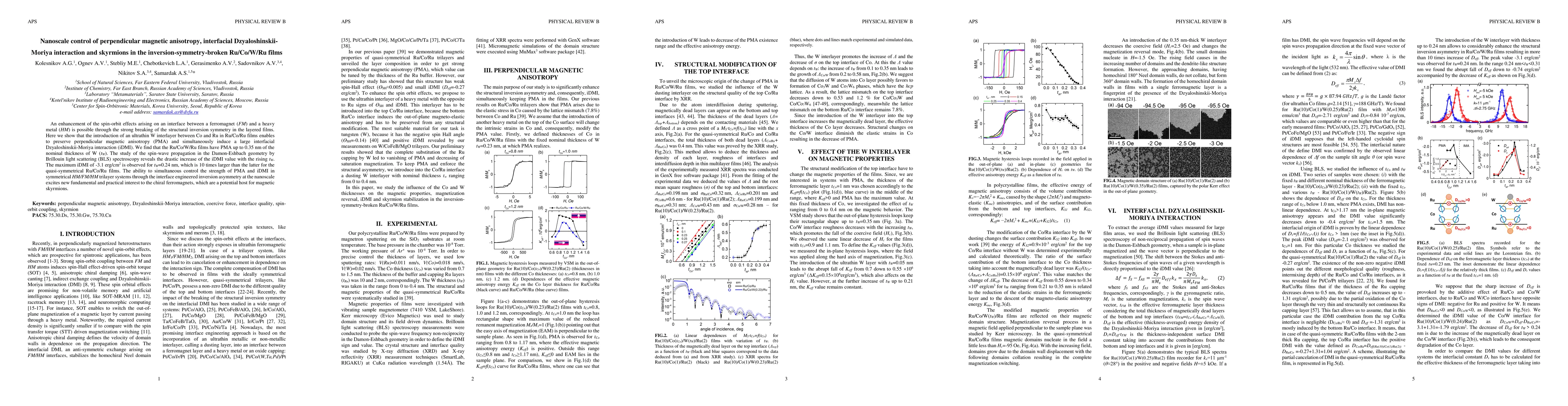 This paper demonstrates that inserting an ultrathin W layer between Co and Ru in Ru/Co/Ru films enhances spin-orbit effects by breaking structural inversion symmetry, leading to strong perpendicular magnetic anisotropy and a large interfacial Dzyaloshinskii-Moriya interaction. The study finds that the maximum iDMI is 10 times larger in these asymmetrical films compared to quasi-symmetrical counterparts, opening new avenues for magnetic skyrmion research.