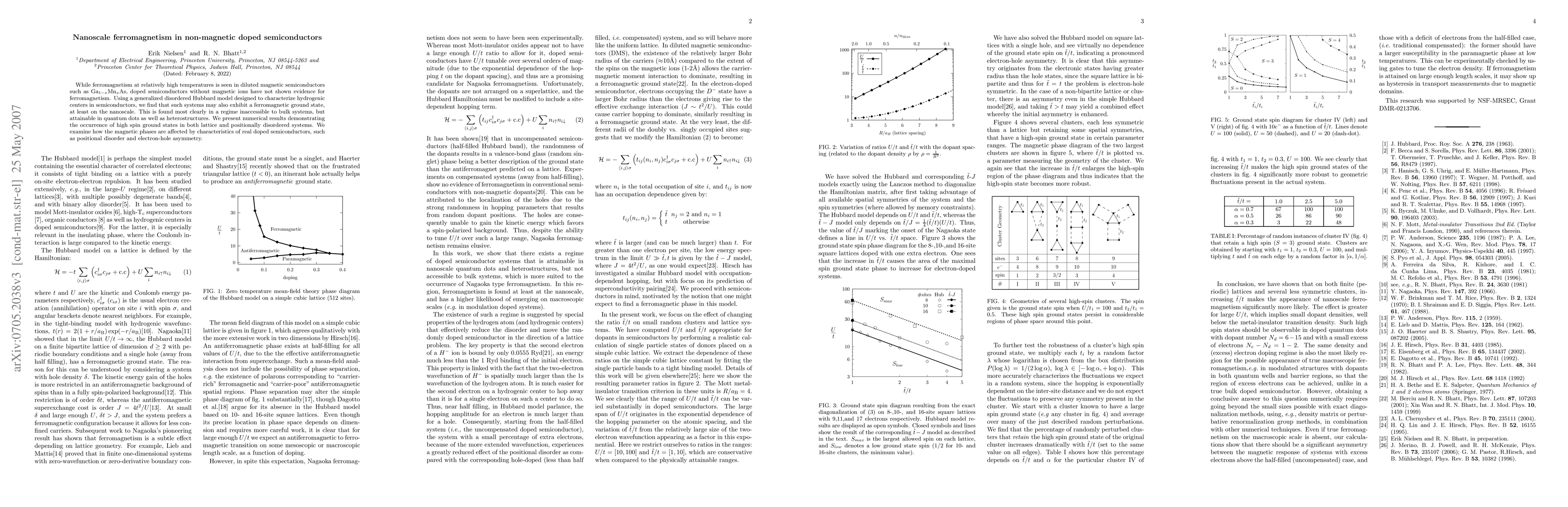 This research reveals that nanoscale ferromagnetism can occur in non-magnetic doped semiconductors, using a generalized disordered Hubbard model. Numerical results indicate high spin ground states in disordered systems, suggesting ferromagnetism may be attainable in quantum dots and heterostructures.
