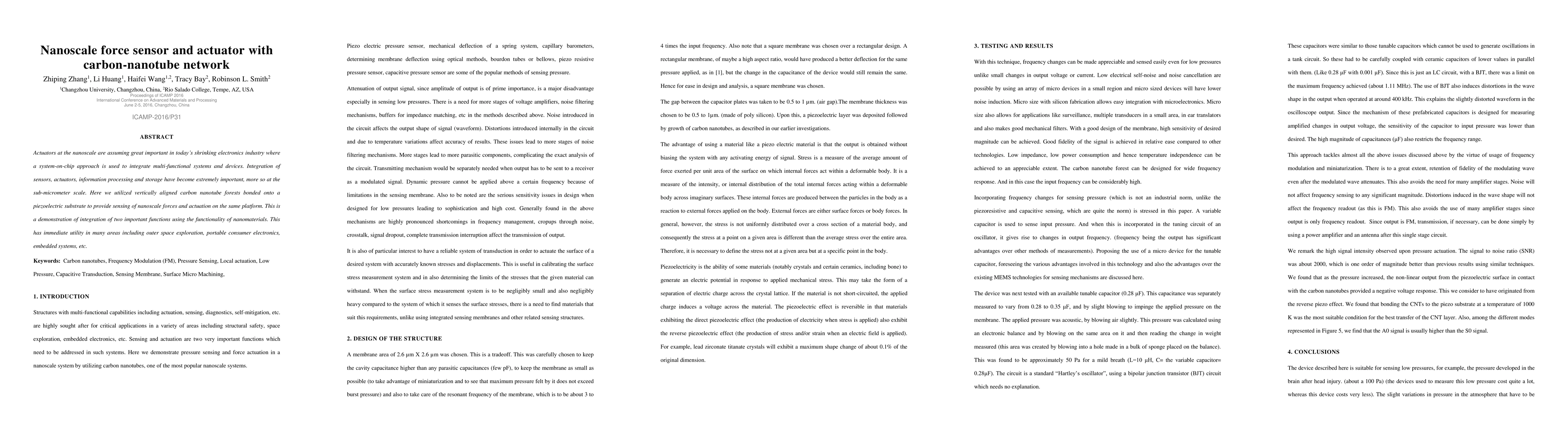 Researchers developed a nanoscale force sensor and actuator using carbon nanotube networks on a piezoelectric substrate, enabling integration of sensing and actuation capabilities in a single platform for various applications.