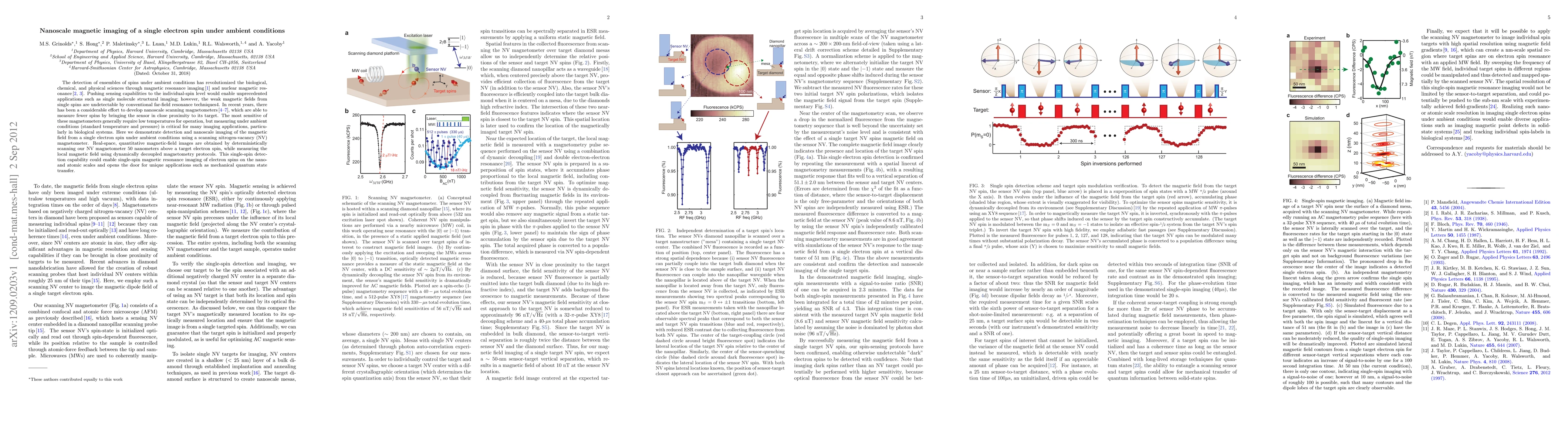 This paper demonstrates the detection and nanoscale imaging of a single electron spin's magnetic field under ambient conditions using a scanning nitrogen-vacancy magnetometer. The method enables real-space, quantitative magnetic-field imaging, paving the way for applications like single-spin magnetic resonance imaging and mechanical quantum state transfer.