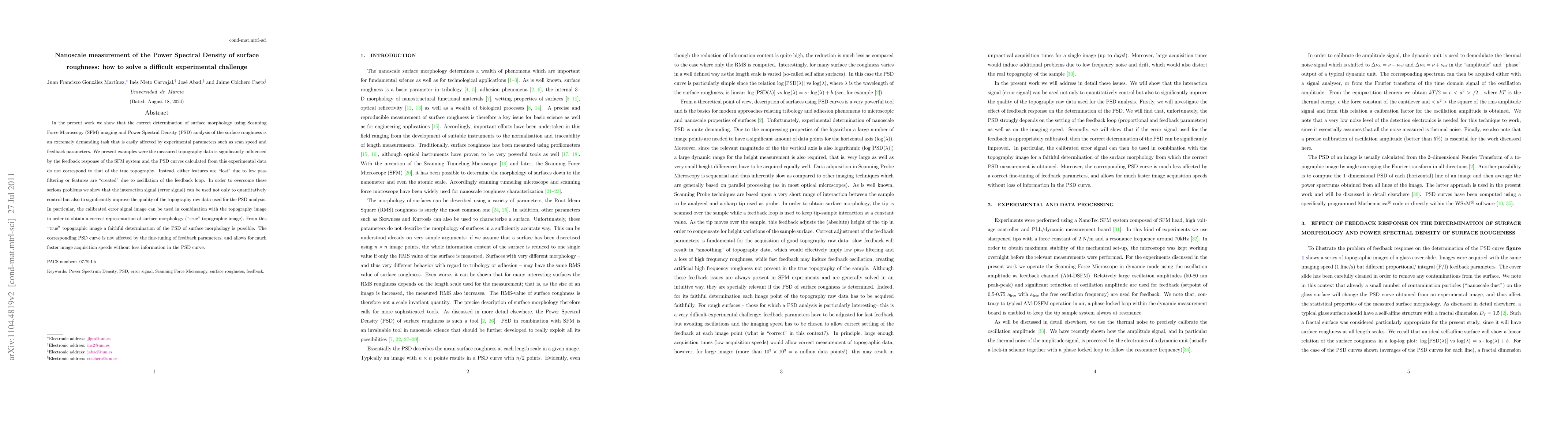 Researchers overcame challenges in measuring surface roughness using Scanning Force Microscopy (SFM) by utilizing the interaction signal to improve data quality, allowing for accurate power spectral density determination without relying on feedback parameter fine-tuning.