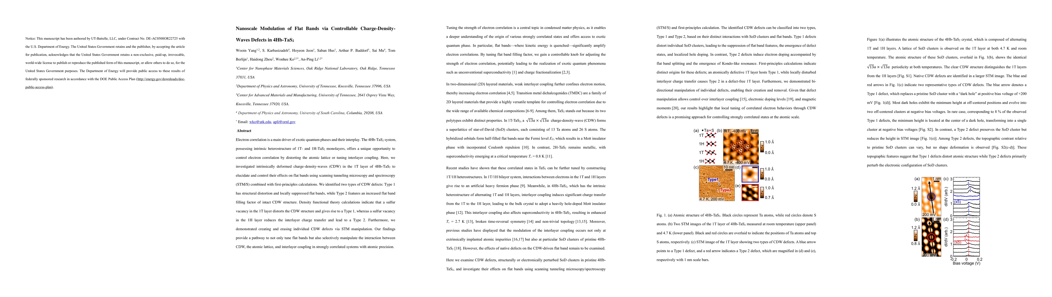The paper presents a novel approach to identify and manipulate CDW defects in 4Hb-TaS2 using STM/S and first-principles calculations, enabling precise tuning of strongly correlated electronic states with atomic precision.