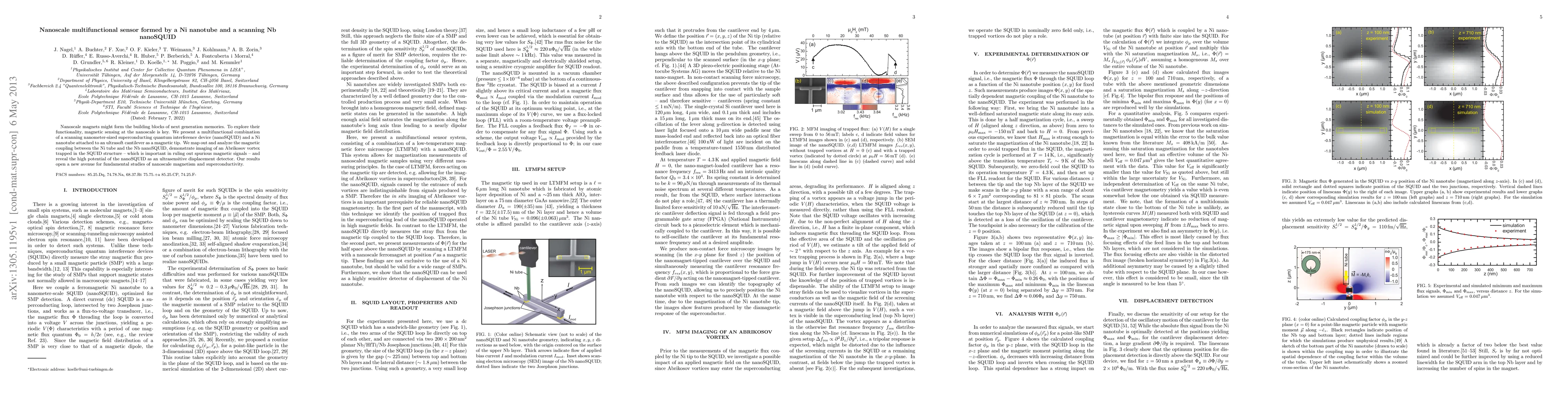 This paper presents a nanoscale multifunctional sensor combining a Ni nanotube and a scanning Nb nanoSQUID, demonstrating magnetic coupling and imaging of an Abrikosov vortex, and highlighting the sensor's potential for ultrasensitive displacement detection, thus advancing fundamental studies of nanoscale magnetism and superconductivity.