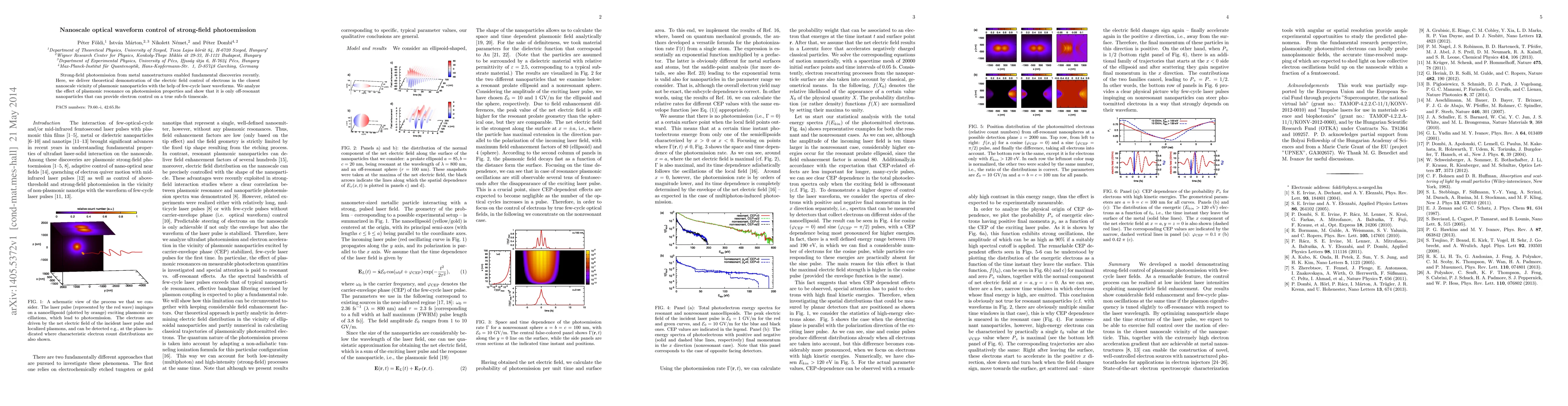 This paper theoretically demonstrates electric field control of electrons near plasmonic nanoparticles using few-cycle laser waveforms, revealing that off-resonant nanoparticles enable true sub-fs timescale electron control. The study highlights the impact of plasmonic resonance on strong-field photoemission properties.