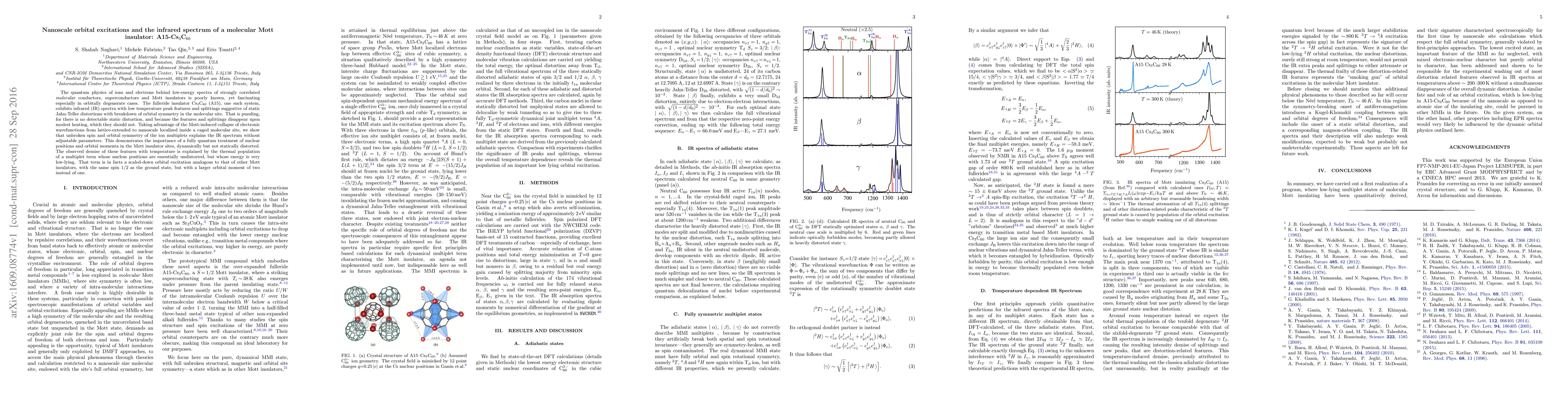 The quantum physics of ions and electrons behind low-energy spectra of strongly correlated {\it molecular} conductors, superconductors and Mott insulators is poorly known, yet fascinating especially in orbitally degenerate cases. The fulleride insulator Cs$_{3}$C$_{60}$ (A15), one such system, exhibits infrared (IR) spectra with low temperature peak features and splittings suggestive of static Jahn-Teller distortions with breakdown of orbital symmetry in the molecular site. That is puzzling, for there is no detectable static distortion, and because the features and splittings disappear upon modest heating, which they should not. Taking advantage of the Mott-induced collapse of electronic wavefunctions from lattice-extended to nanoscale localized inside a caged molecular site, we show that unbroken spin and orbital symmetry of the ion multiplets explains the IR spectrum without adjustable parameters. This demonstrates the importance of a fully quantum treatment of nuclear positions and orbital momenta in the Mott insulator sites, dynamically but not statically distorted. The observed demise of these features with temperature is explained by the thermal population of a multiplet term whose nuclear positions are essentially undistorted, but whose energy is very low-lying. That term is in facts a scaled-down orbital excitation analogous to that of other Mott insulators, with the same spin $1/2$ as the ground state, but with a larger orbital moment of two instead of one.
