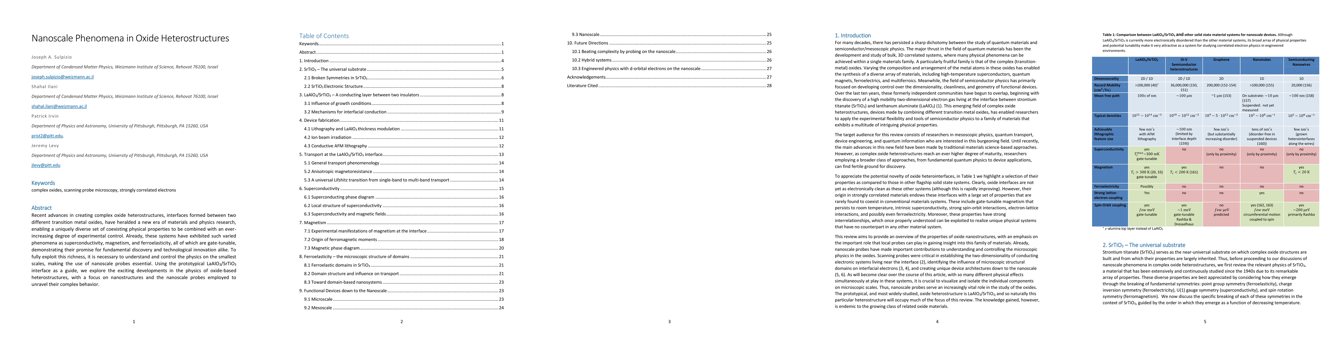 This paper explores the advancements in creating complex oxide heterostructures, focusing on the nanoscale phenomena that enable gate-tunable properties like superconductivity and magnetism. It highlights the importance of nanoscale probes to fully understand these interfaces, using LaAlO$_3$/SrTiO$_3$ as a primary example.