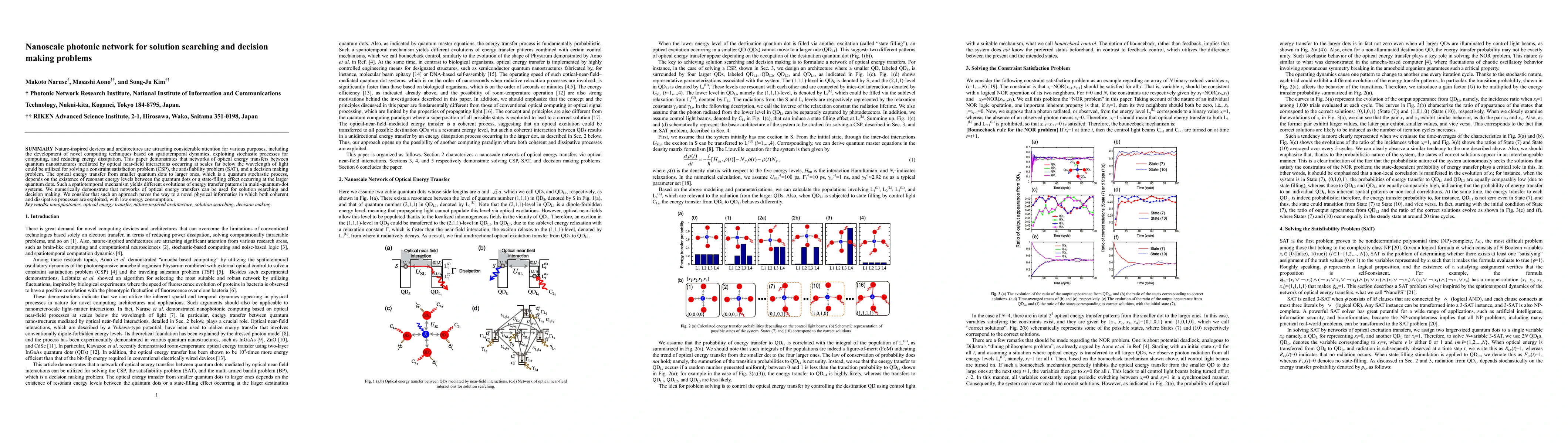 This paper explores the use of nanoscale photonic networks based on quantum nanostructures and optical near-field interactions for solving complex computational problems like CSP, SAT, and decision making. The study demonstrates that optical energy transfer between quantum dots can exploit quantum stochastic processes for efficient, low-energy solution searching and decision making.