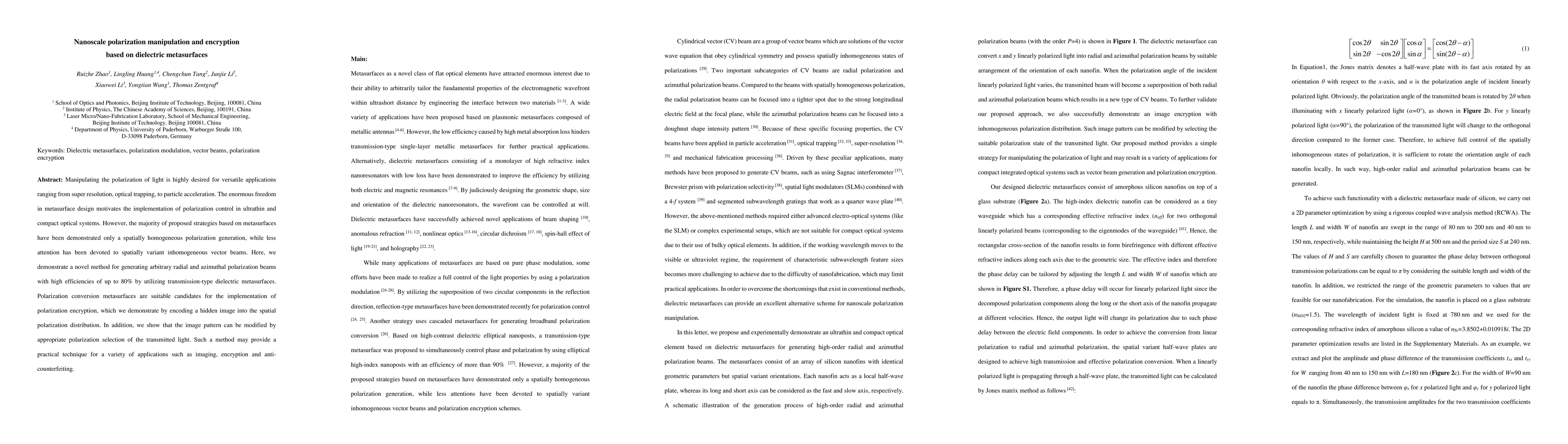 Researchers demonstrate a novel method for generating arbitrary polarization beams with high efficiency using dielectric metasurfaces, enabling applications such as encryption and anti-counterfeiting.