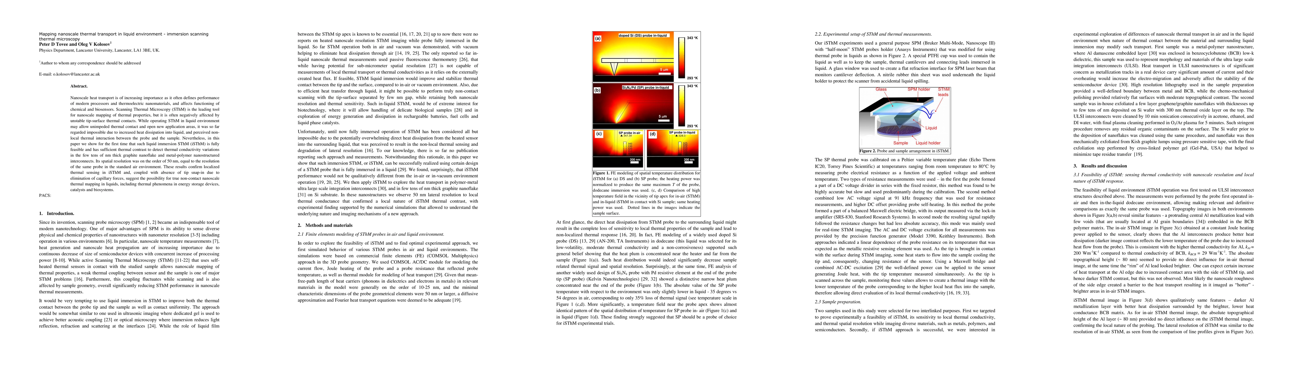 This paper demonstrates the successful development of immersion scanning thermal microscopy (iSThM) for nanoscale thermal property measurements in liquid environments. The study shows that iSThM maintains spatial resolution and improves thermal contact, enabling precise thermal conductivity measurements of polymer-ceramic interconnects and graphene flakes.