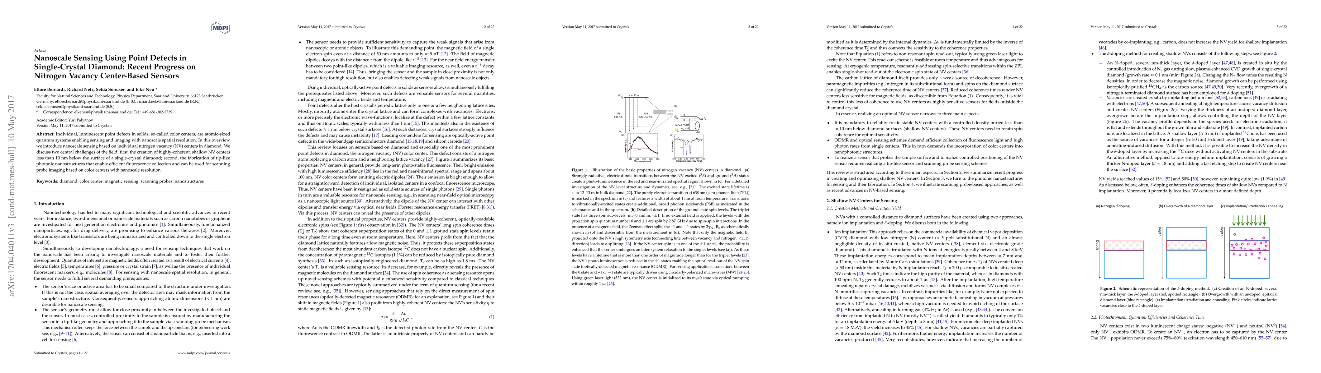 This paper reviews recent advances in nanoscale sensing using nitrogen vacancy centers in single-crystal diamond, focusing on creating coherent NV centers near the diamond surface and developing photonic nanostructures for efficient fluorescence collection and high-resolution imaging.