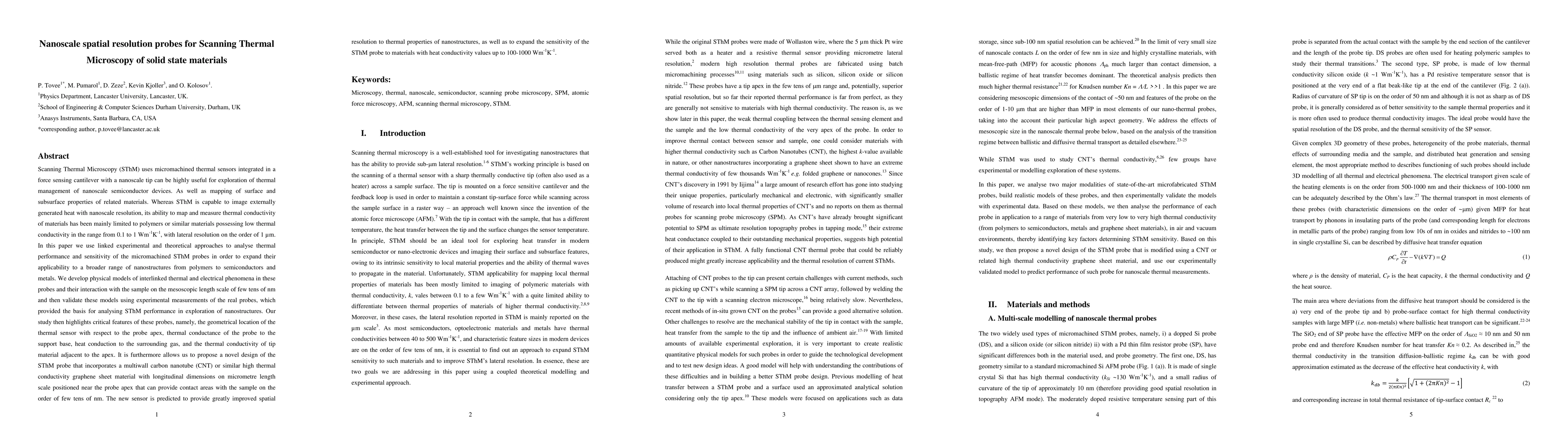 This paper develops nanoscale spatial resolution probes for Scanning Thermal Microscopy (SThM) to enhance thermal management studies in semiconductor devices and materials mapping. It proposes a novel SThM probe design using high thermal conductivity materials like carbon nanotubes, aiming to achieve resolution down to tens of nm and sensitivity to materials with high thermal conductivity up to 100-1000 W/mK.