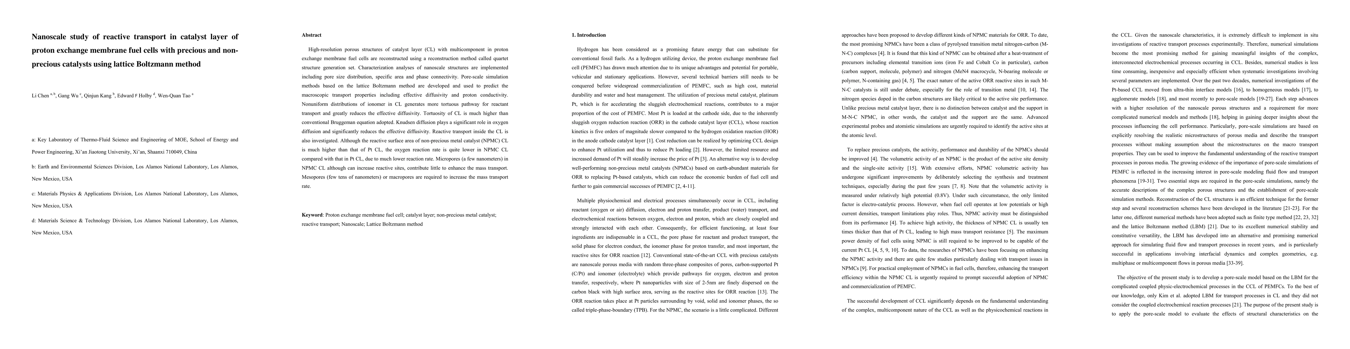 This paper reconstructs high-resolution porous structures of catalyst layers in proton exchange membrane fuel cells using a quartet structure generation set. It employs lattice Boltzmann methods to simulate nanoscale reactive transport, revealing that nonuniform ionomer distribution and Knudsen diffusion significantly reduce effective diffusivity, and mesopores/macropores are crucial for enhancing mass transport.